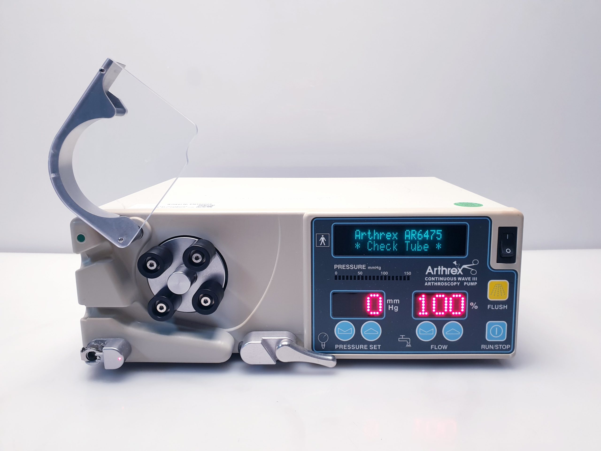 Die Arthrex AR-6475 Continuous Wave III Arthroscopy Pump ist eine hochmoderne Lösung für die arthroskopische Flüssigkeitszufuhr während minimal-invasiver Gelenkchirurgie. Entwickelt, um Chirurgen eine präzise und zuverlässige Kontrolle der intraartikulären Druckverhältnisse zu ermöglichen, unterstützt diese Pumpe eine verbesserte Sichtbarkeit und Sicherheit im Operationsfeld.