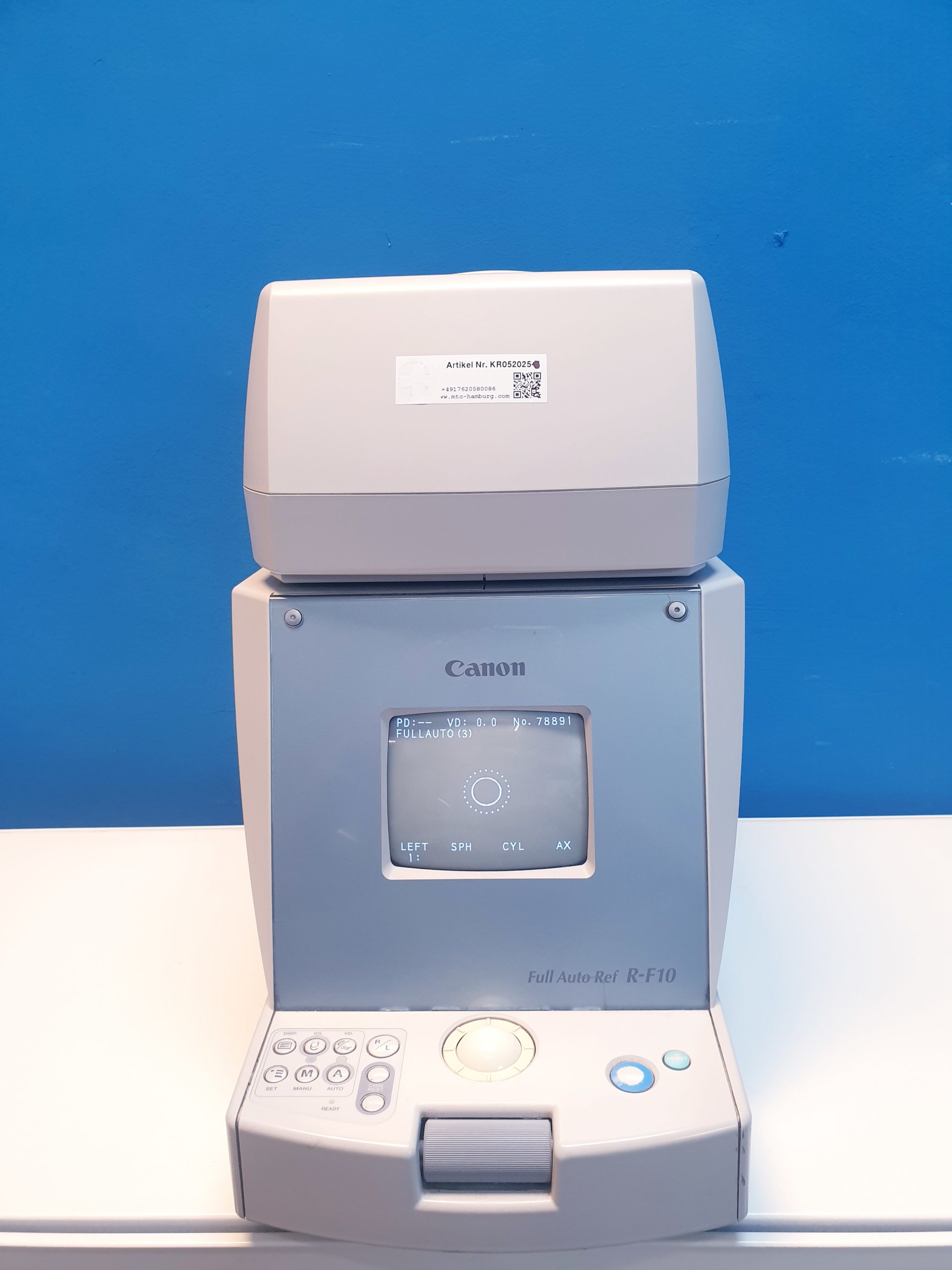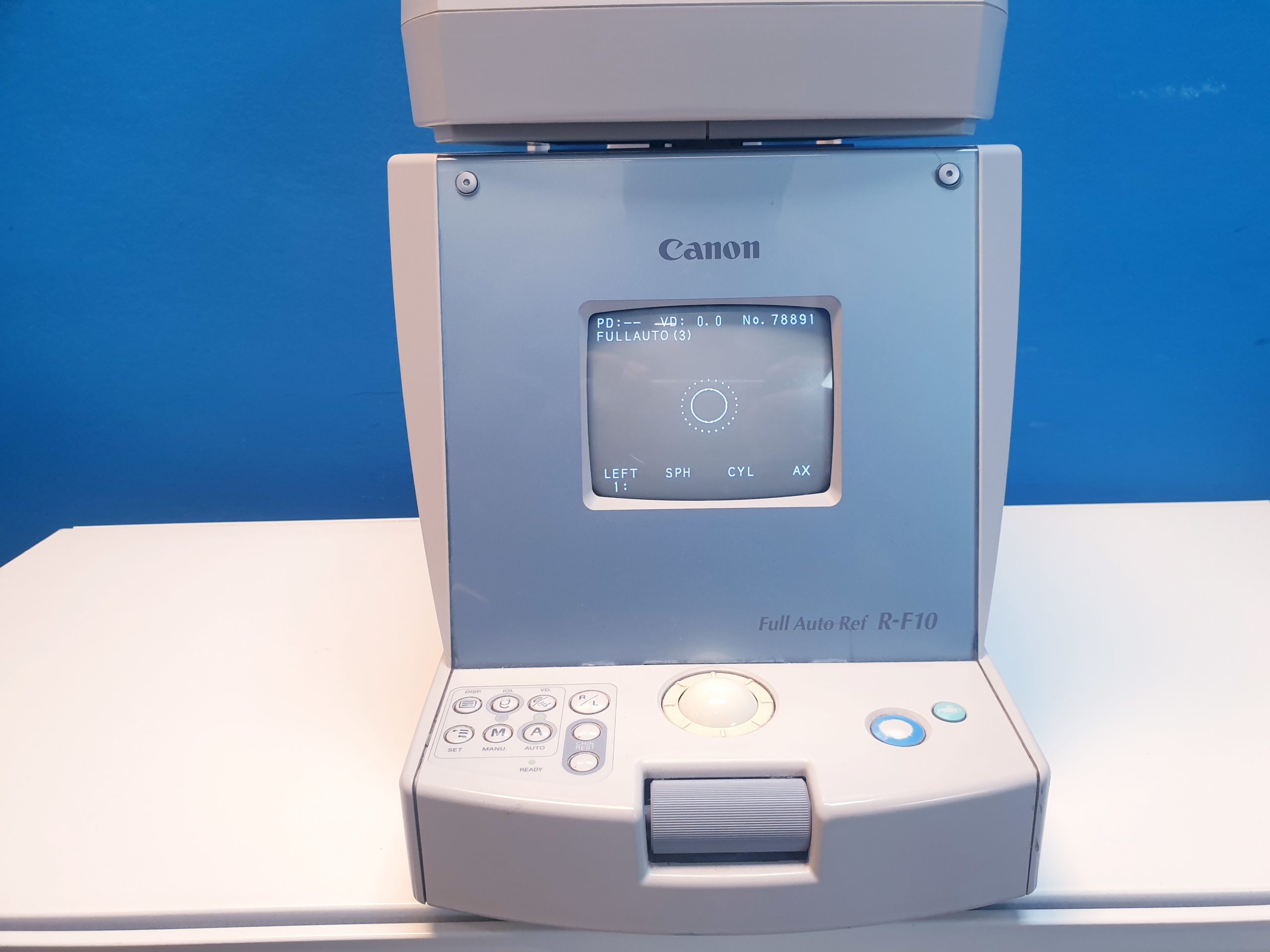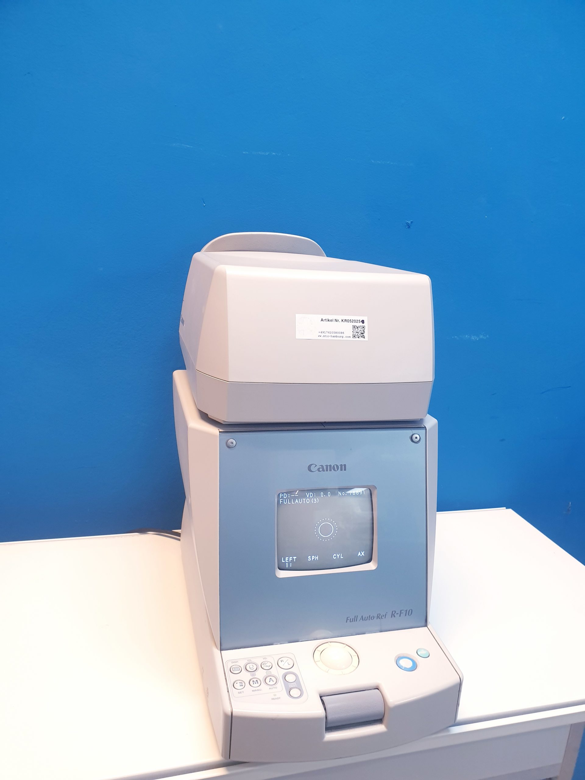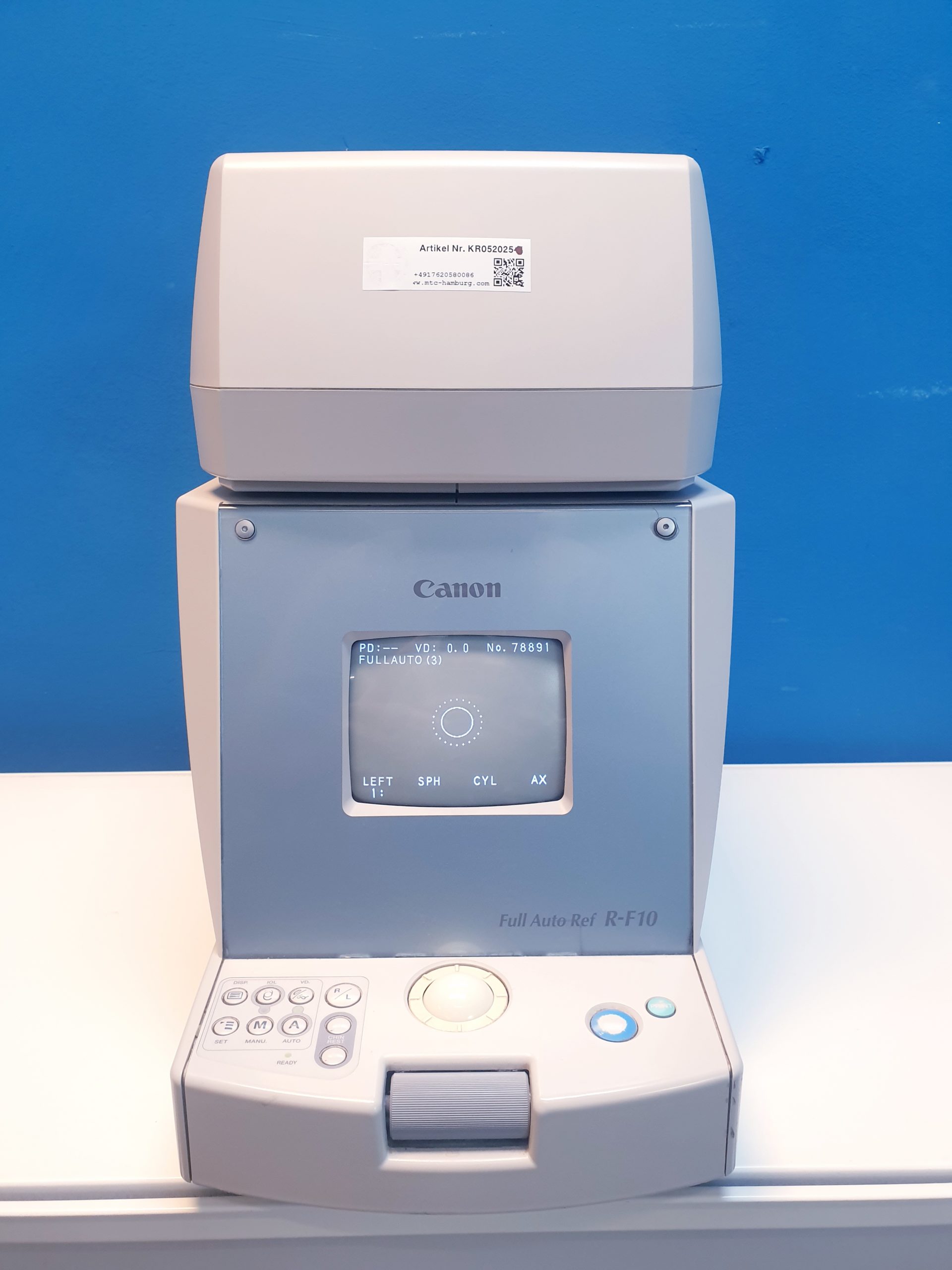 Canon Full Auto REF R-F10 RF10 ist ein hochpräzises, vollautomatisches Refraktometer, das schnelle und zuverlässige Messungen der Brechkraft des Auges ermöglicht. Es eignet sich ideal für den Einsatz in Augenarztpraxen und Optikerbetrieben, um eine effiziente und genaue Refraktionsbestimmung sicherzustellen.