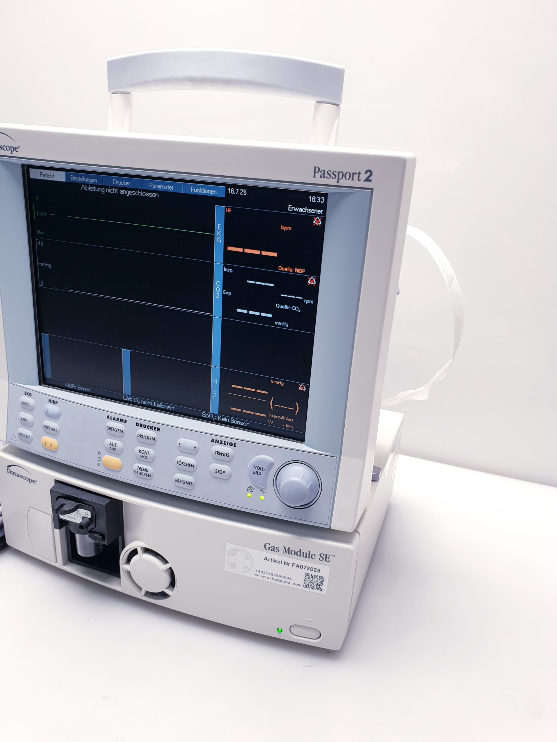 Indikationen: Der Datascope Passport 2 + Gas Module SE ist ideal für die Überwachung von Patienten während der Anästhesie, bei chirurgischen Eingriffen sowie in der postoperativen Phase. Er unterstützt Anästhesisten und Pflegepersonal dabei, Veränderungen im Patientenstatus frühzeitig zu erkennen und angemessen zu reagieren.