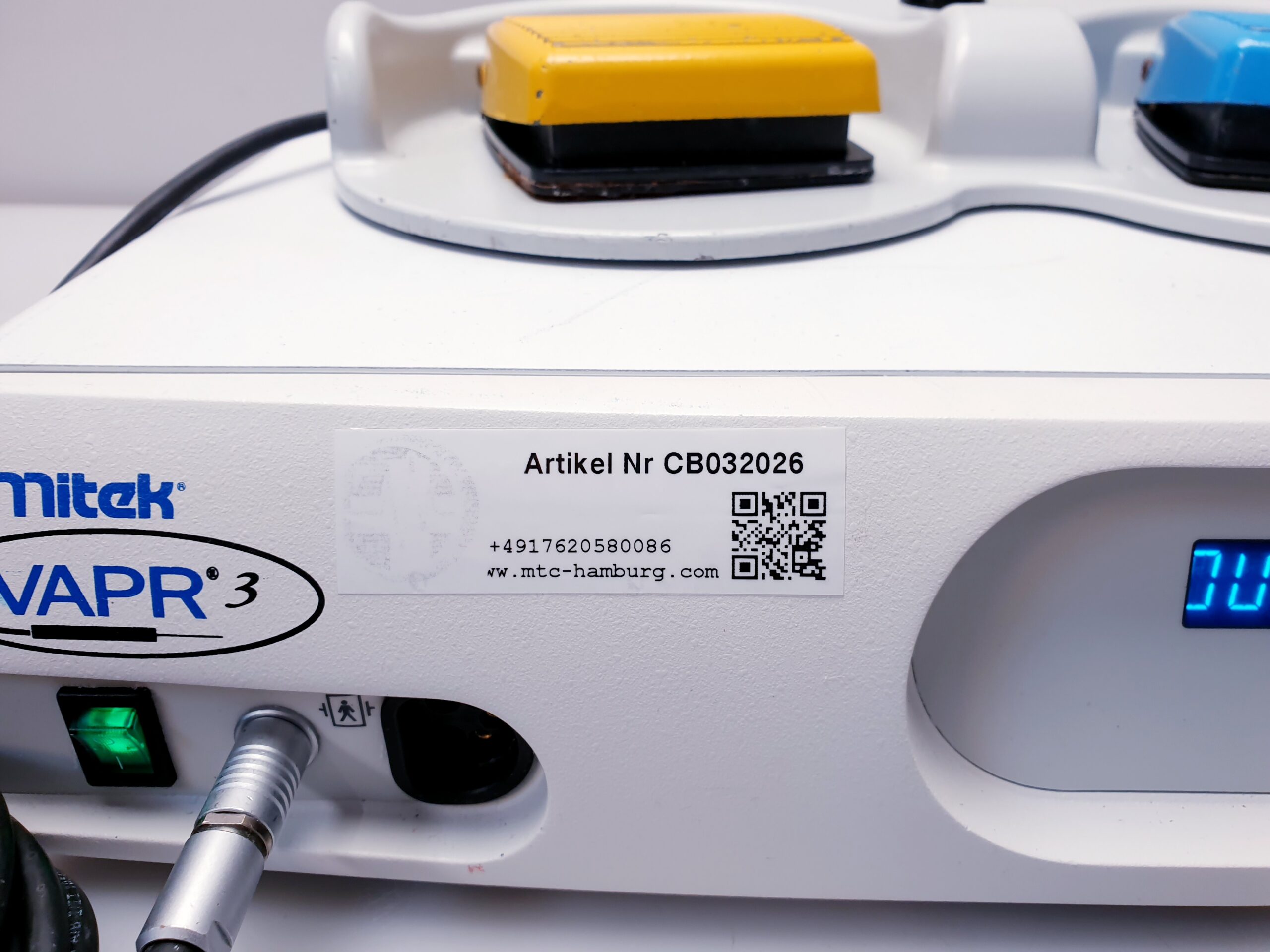 Der DePuy Mitek VAPR 3 ist ein Hochfrequenzgenerator, der in der arthroskopischen Chirurgie und anderen minimal-invasiven Verfahren eingesetzt wird. Er wird häufig zur Gewebeablation, Koagulation und zur Unterstützung bei chirurgischen Eingriffen verwendet. Hier sind einige der Hauptmerkmale und Vorteile des VAPR 3 Generators sowie der Fußsteuerung (Foot Control):