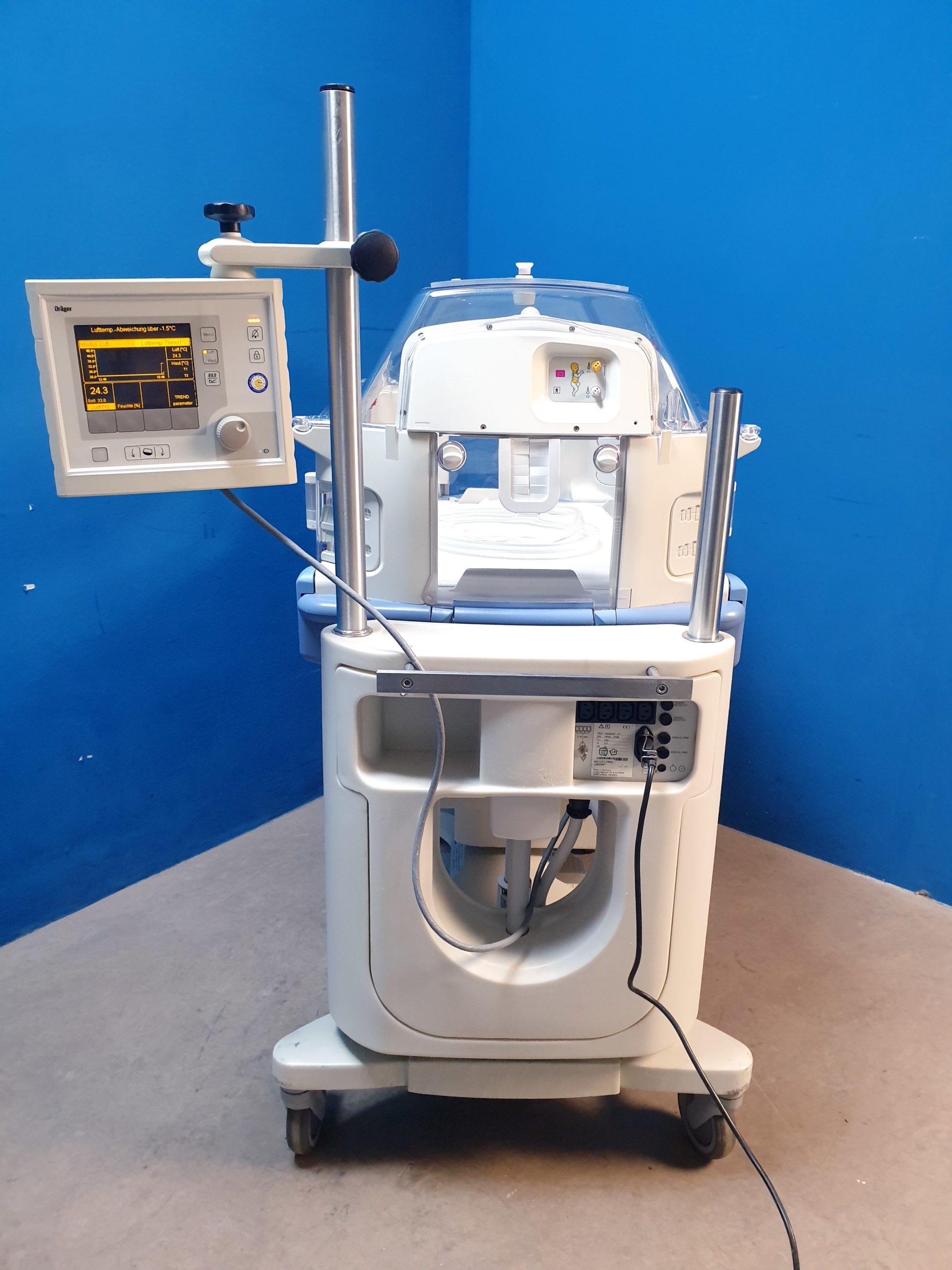 - Flexibilität und Erweiterbarkeit: Der Dräger Caleo Incubator lässt sich an verschiedene klinische Anforderungen anpassen und bietet Optionen für die Integration weiterer medizinischer Geräte.