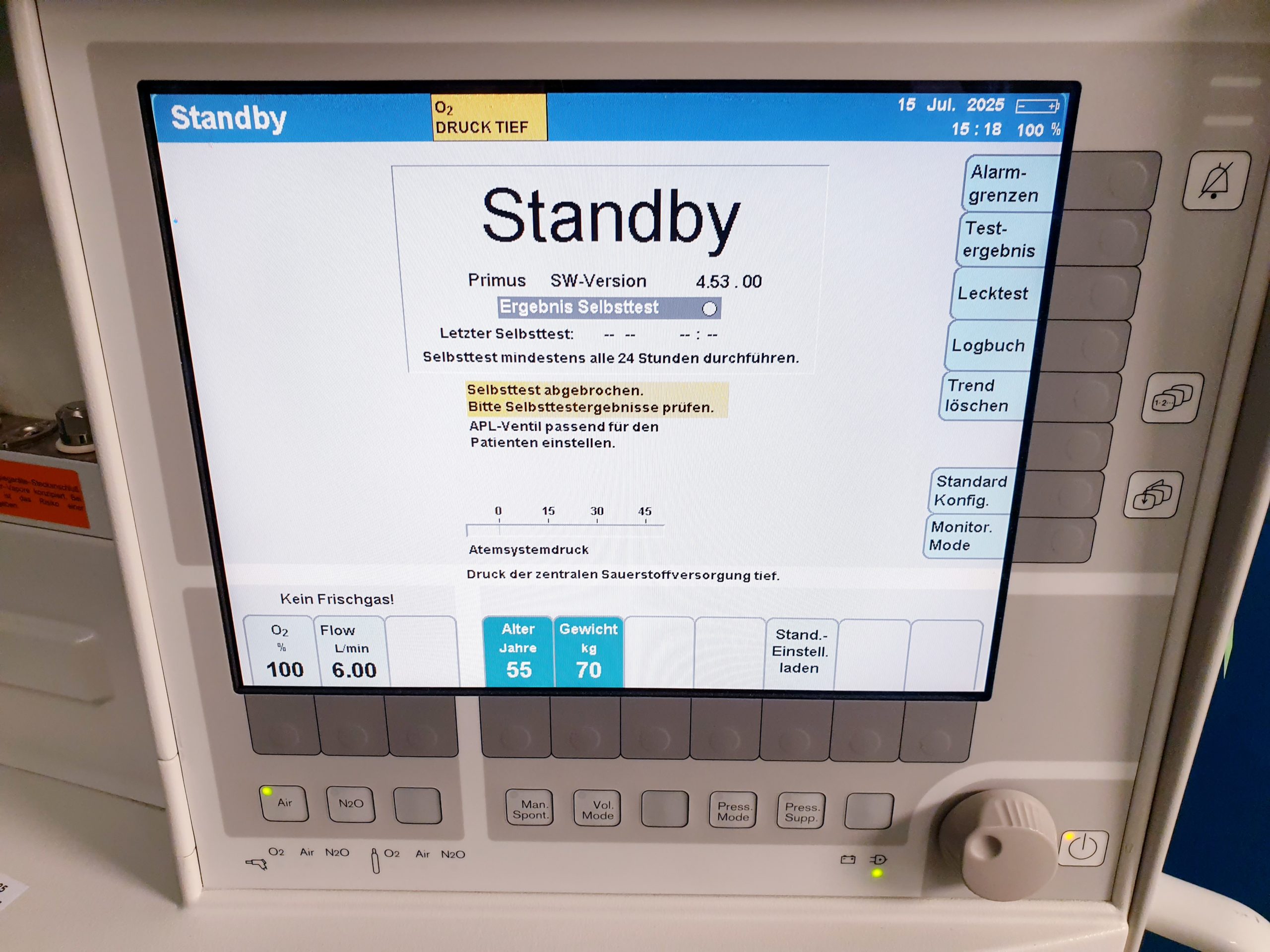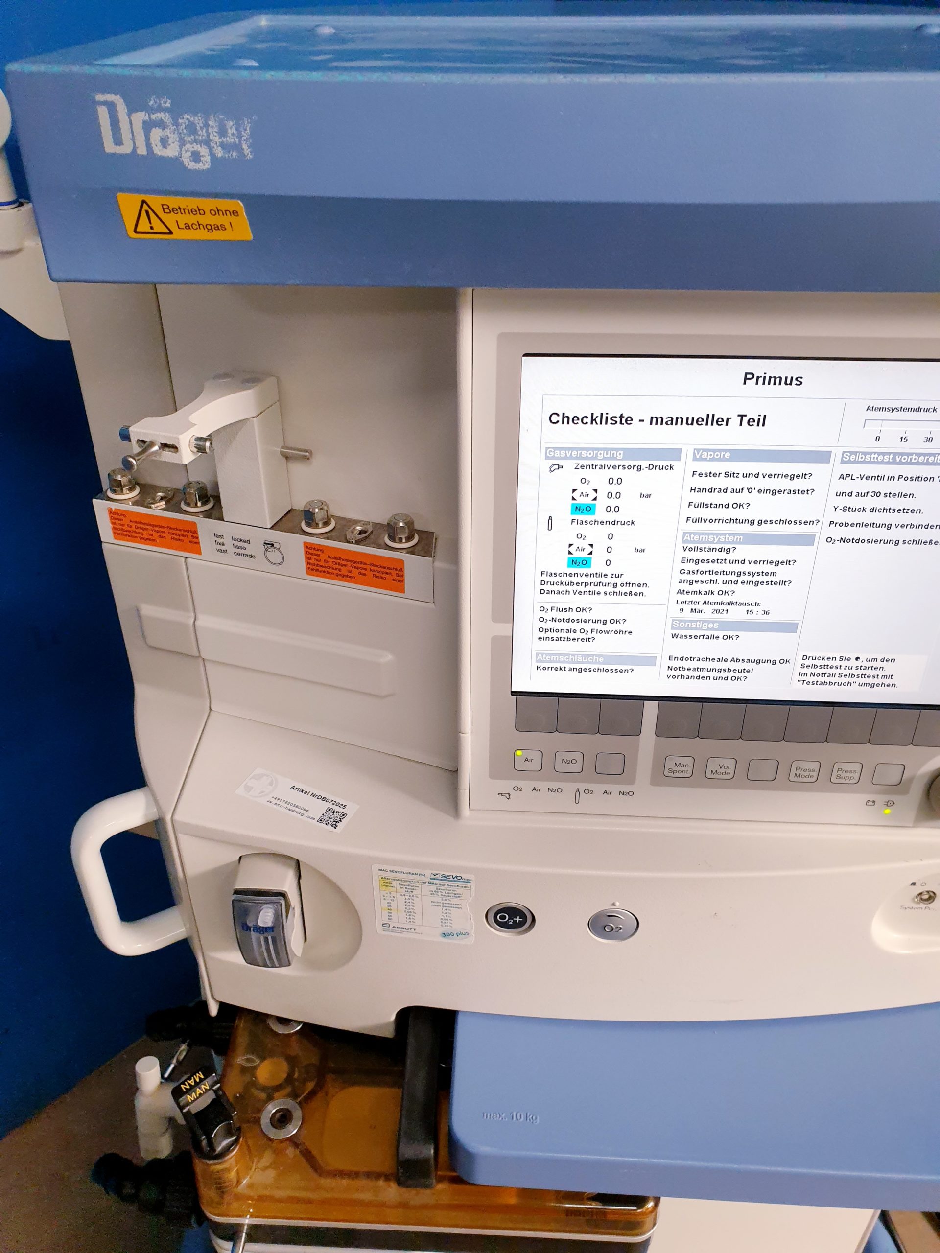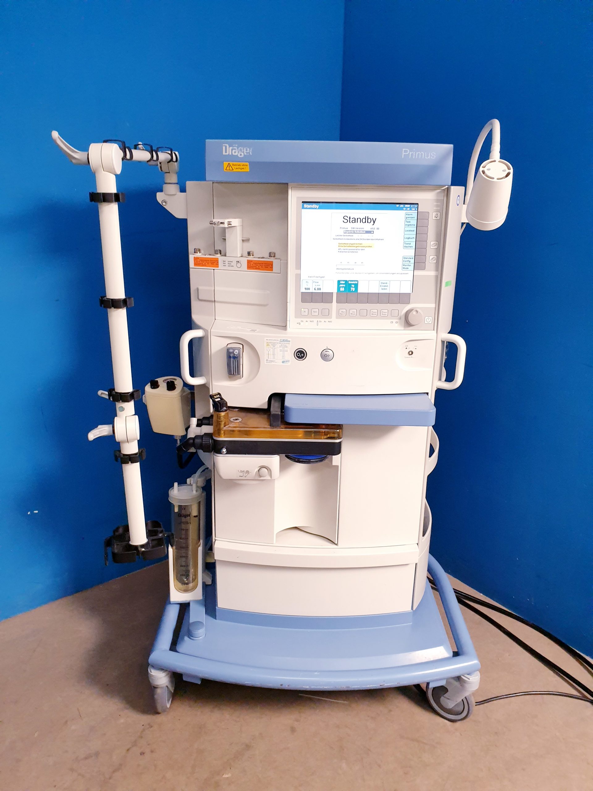 Dräger Primus PGM SW 4.53 generalüberholt und sofort einsatzbereit, inklusive Gerätebuch und Sicherheitsprüfung (STK). Dieses hochwertige Anästhesiegerät gewährleistet zuverlässige Leistung und präzise Steuerung für sichere Patientenversorgung im klinischen Alltag.
