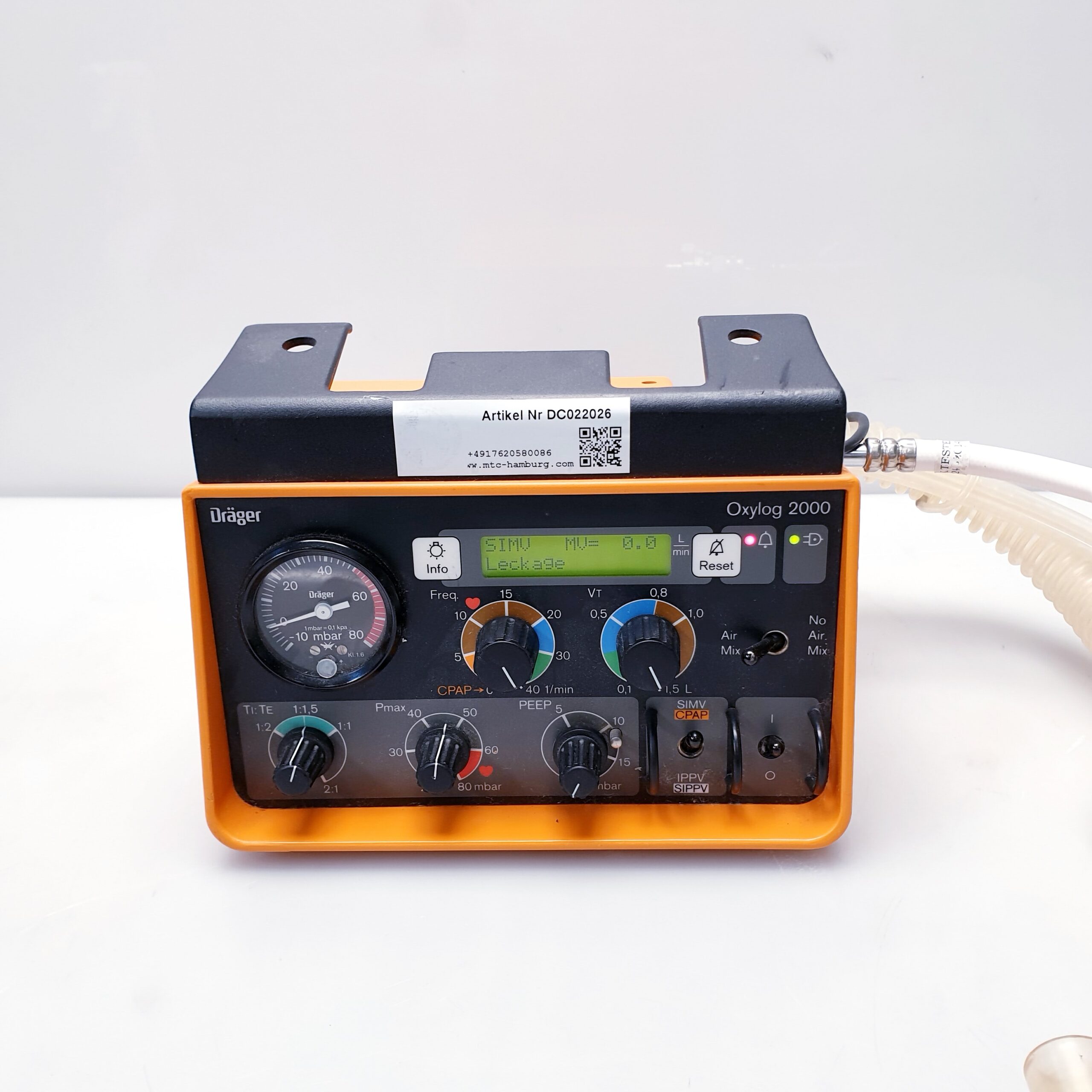 Das Dräger Oxylog 2000 ist ein bewährtes, kompaktes Beatmungsgerät, das speziell für den Einsatz im Rettungsdienst, bei Notfalleinsätzen und für den innerklinischen Transport entwickelt wurde. Es bietet sowohl volumenkontrollierte als auch unterstützte Beatmungsmodi für Erwachsene und Kinder.