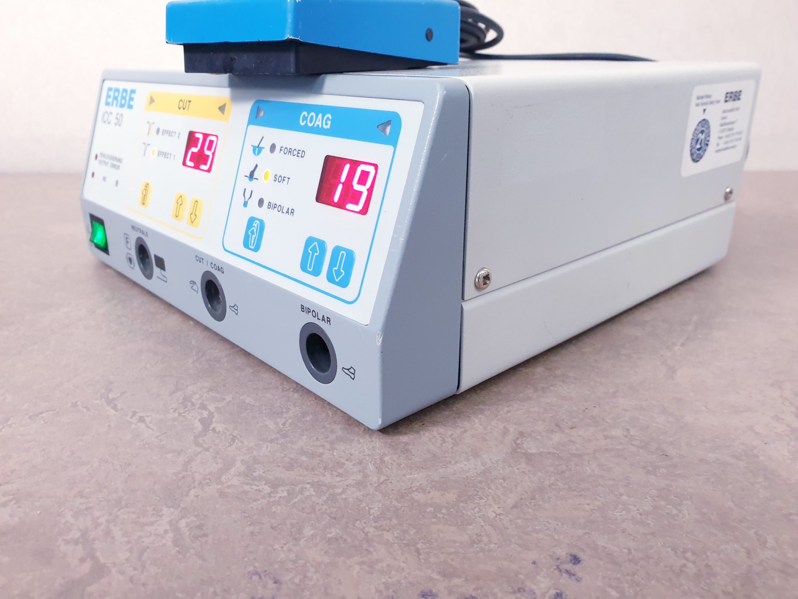 - Vielseitige Anwendungsmöglichkeiten: Das ERBE ICC 50 unterstützt verschiedene chirurgische Techniken wie Schnitt, Koagulation, Blend- und Spray-Koagulation sowie spezielle Modi für die endoskopische Chirurgie.
