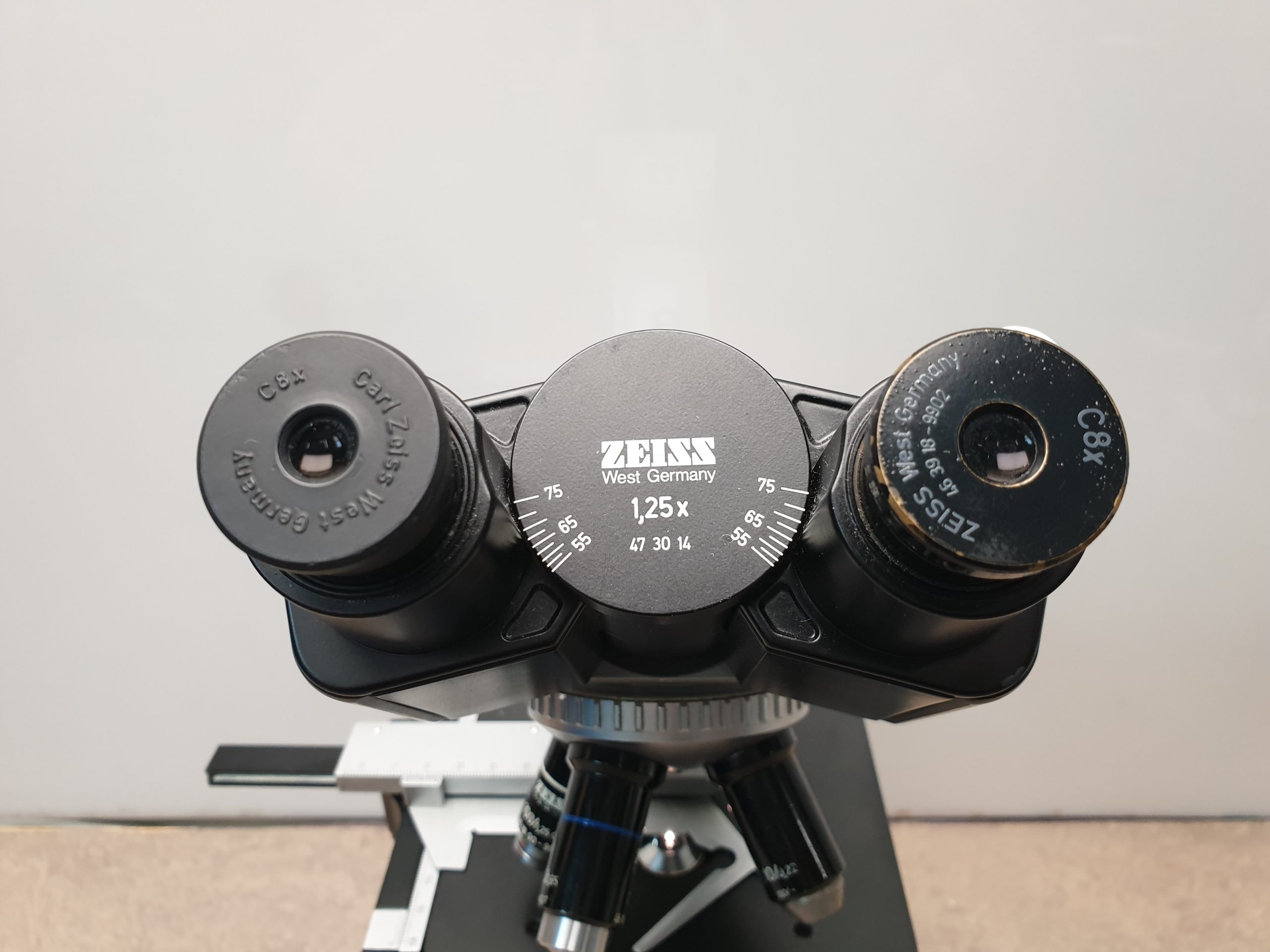 Die Bezeichnung “C8x” könnte auf eine spezifische Vergrößerung oder einen bestimmten Typ von Okular oder Objektiv hinweisen. Zeiss-Mikroskope sind bekannt für ihre Präzision und Langlebigkeit, was sie zu einer beliebten Wahl in Laboren und Bildungseinrichtungen macht.