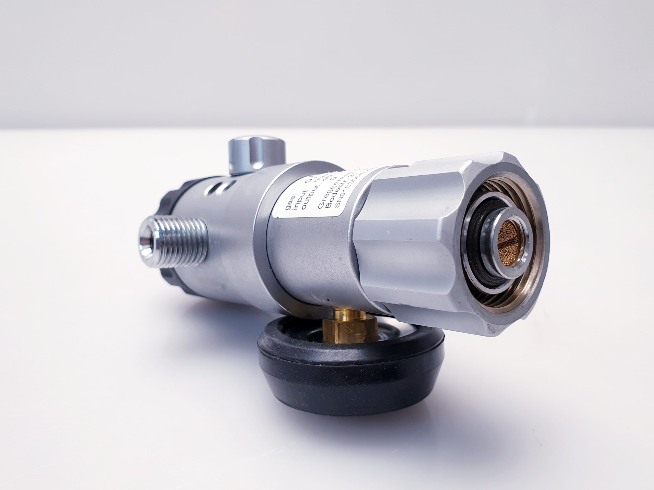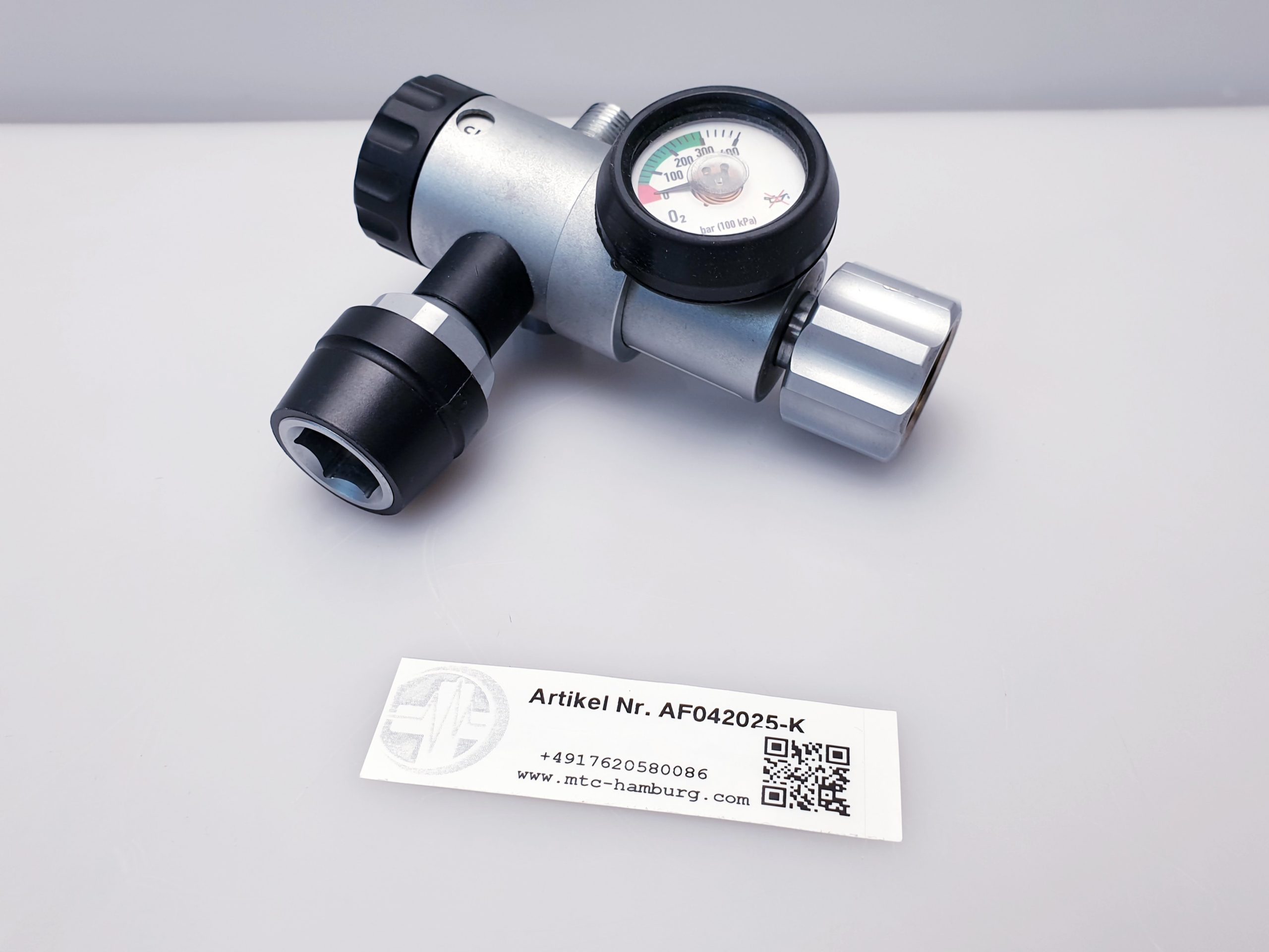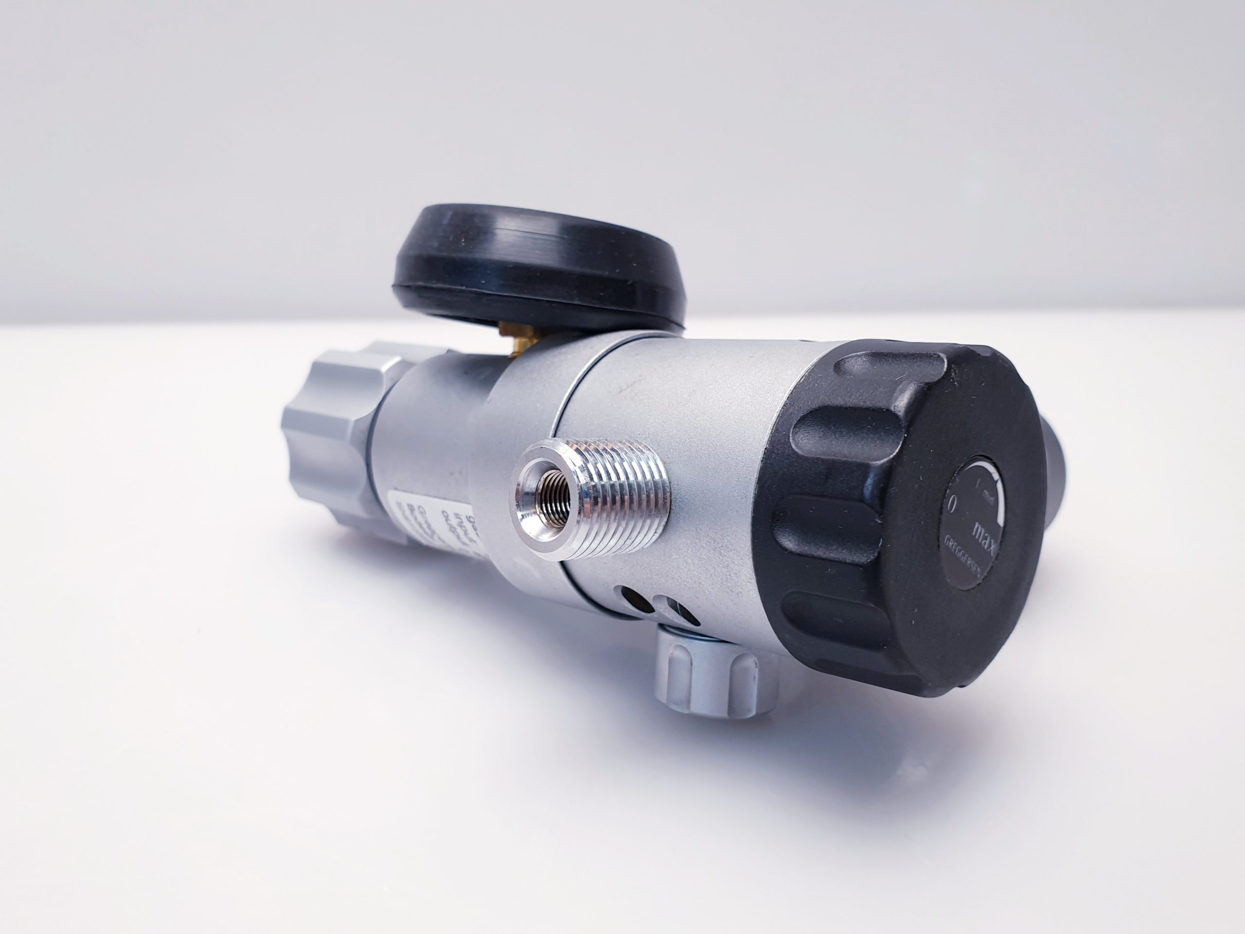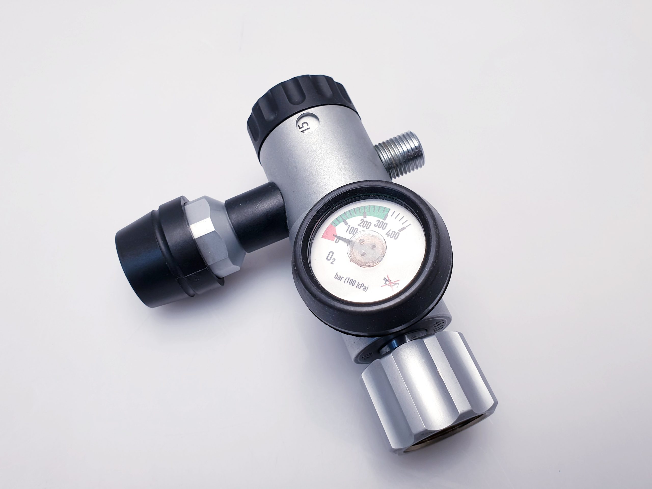 Dieser Druckminderer ist für die Anwendung mit medizinischem Sauerstoff konzipiert. Er reduziert den Flaschendruck auf einen konstanten Ausgangsdruck und erlaubt eine präzise Einstellung des Sauerstoffflusses von 0 bis 15 Litern pro Minute.