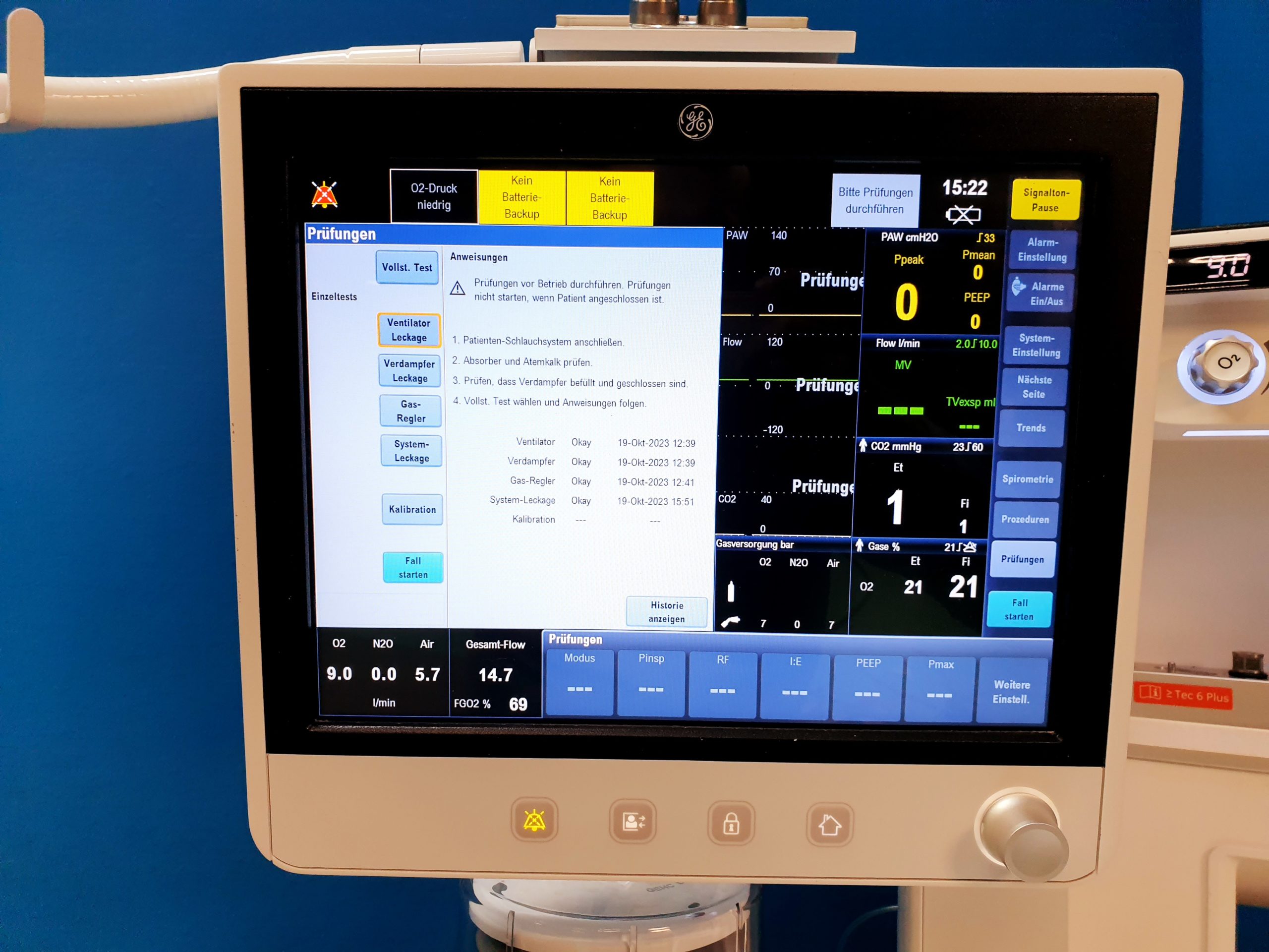 - Überwachungsfunktionen: Das Gerät kann Vitalparameter wie Herzfrequenz, Blutdruck, Sauerstoffsättigung und CO2-Partialdruck überwachen.