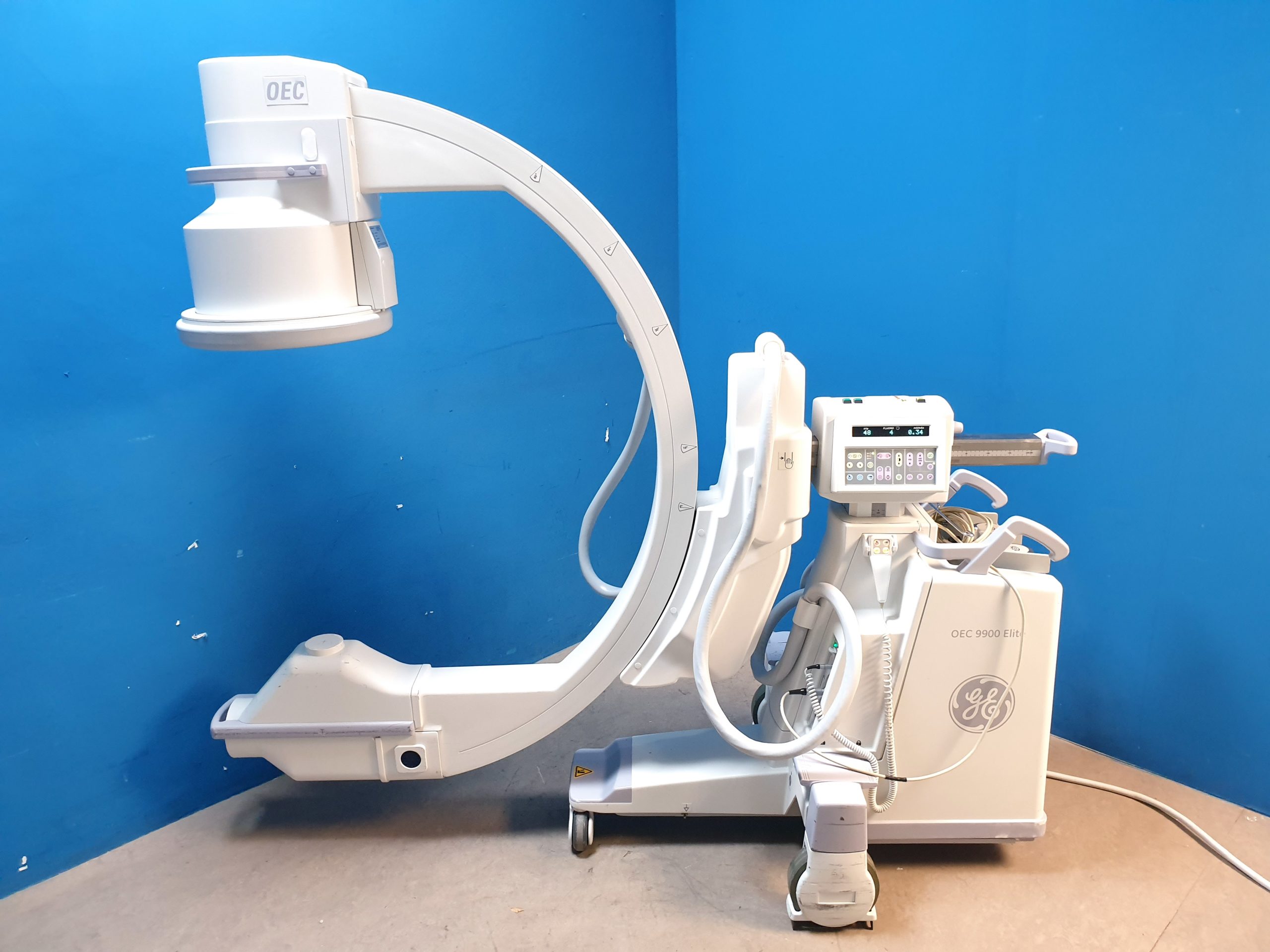 Der GE OEC 9900 Elite C-Bogen ist eine erstklassige Lösung für medizinische Einrichtungen, die Wert auf zuverlässige, präzise und sichere intraoperative Bildgebung legen. Durch seine Kombination aus innovativer Technologie und anwenderorientiertem Design unterstützt er Chirurgen und Radiologen bei der optimalen Patientenversorgung.