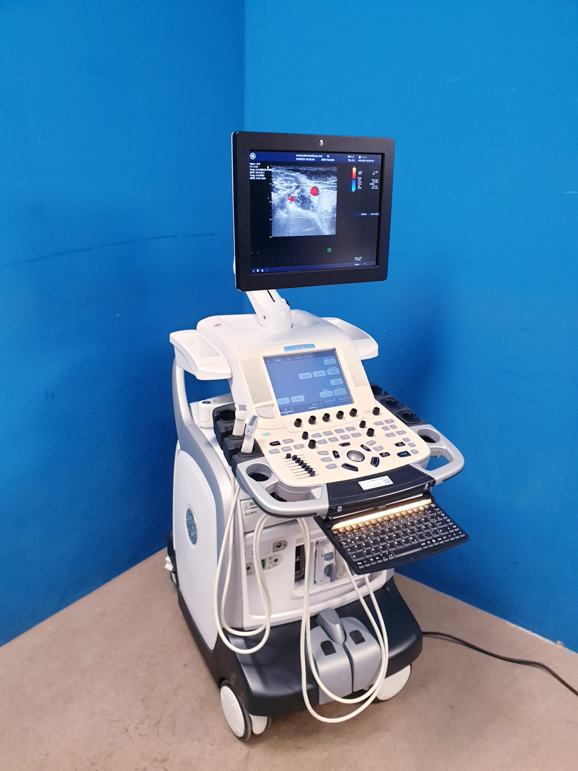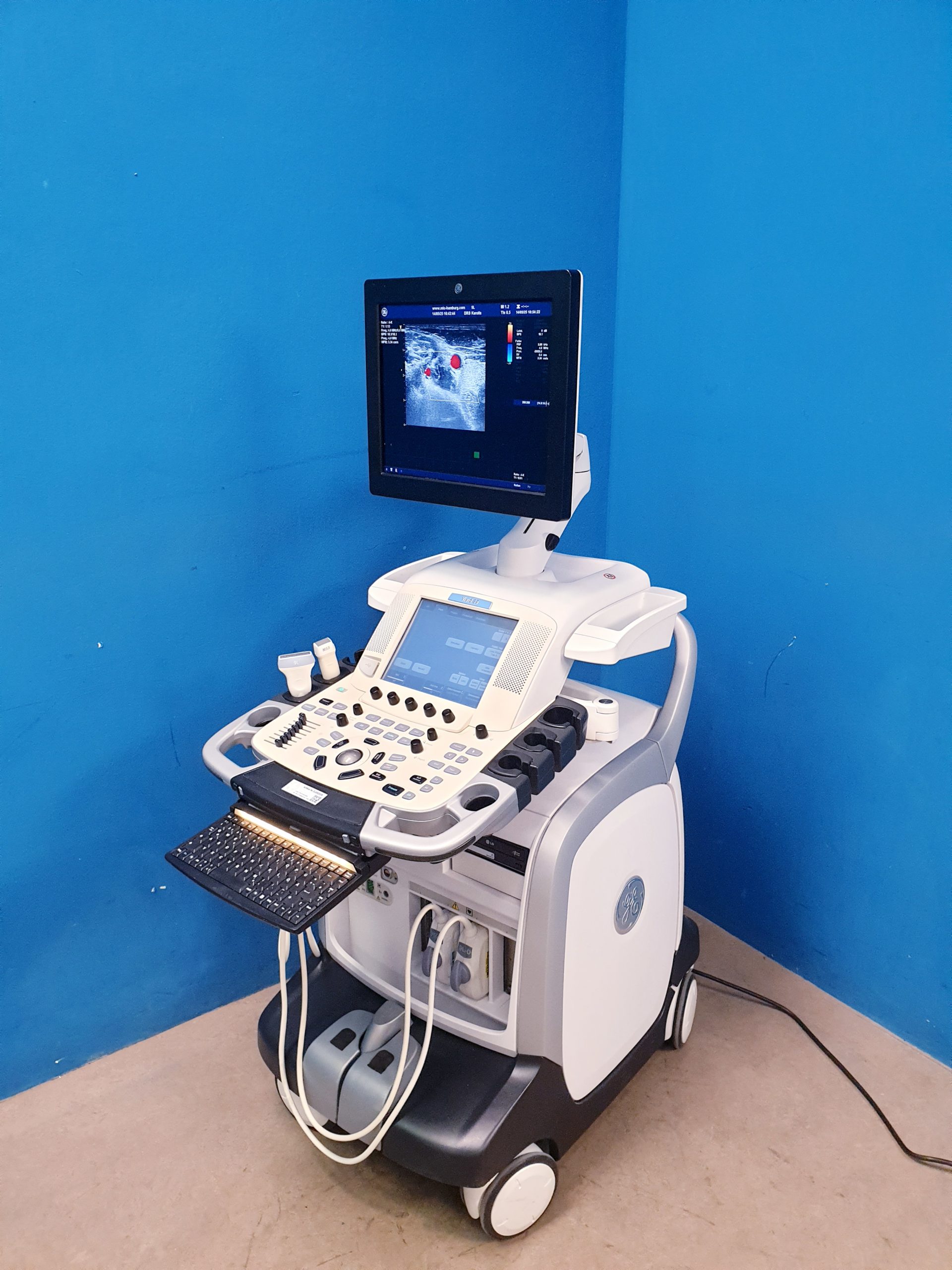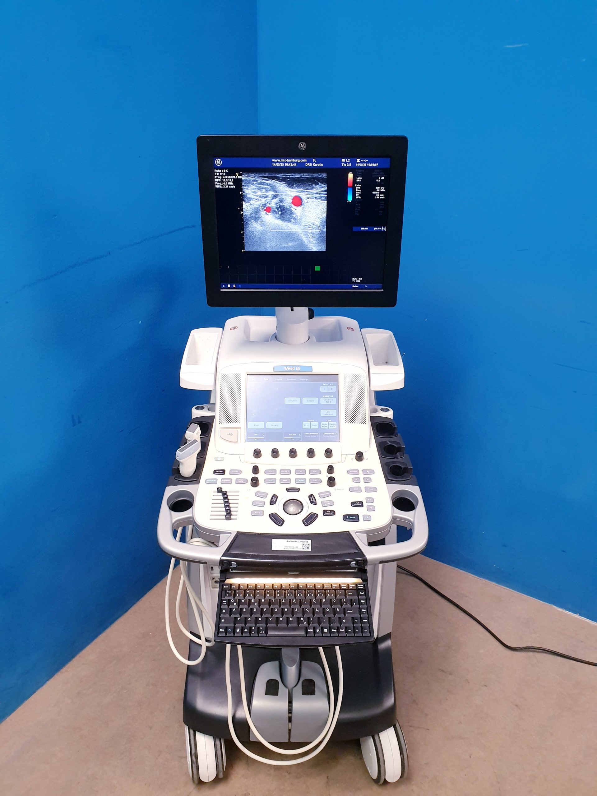 - Flexibilität und Vielseitigkeit: Das VIVID E9 ist für unterschiedliche klinische Anwendungen einsetzbar – von der allgemeinen Kardiologie über interventionelle Untersuchungen bis hin zur Gefäßdiagnostik.