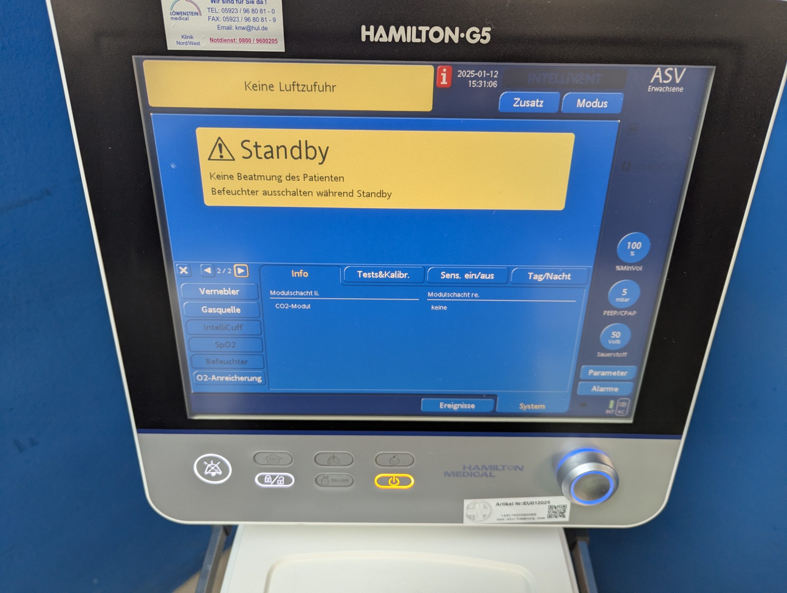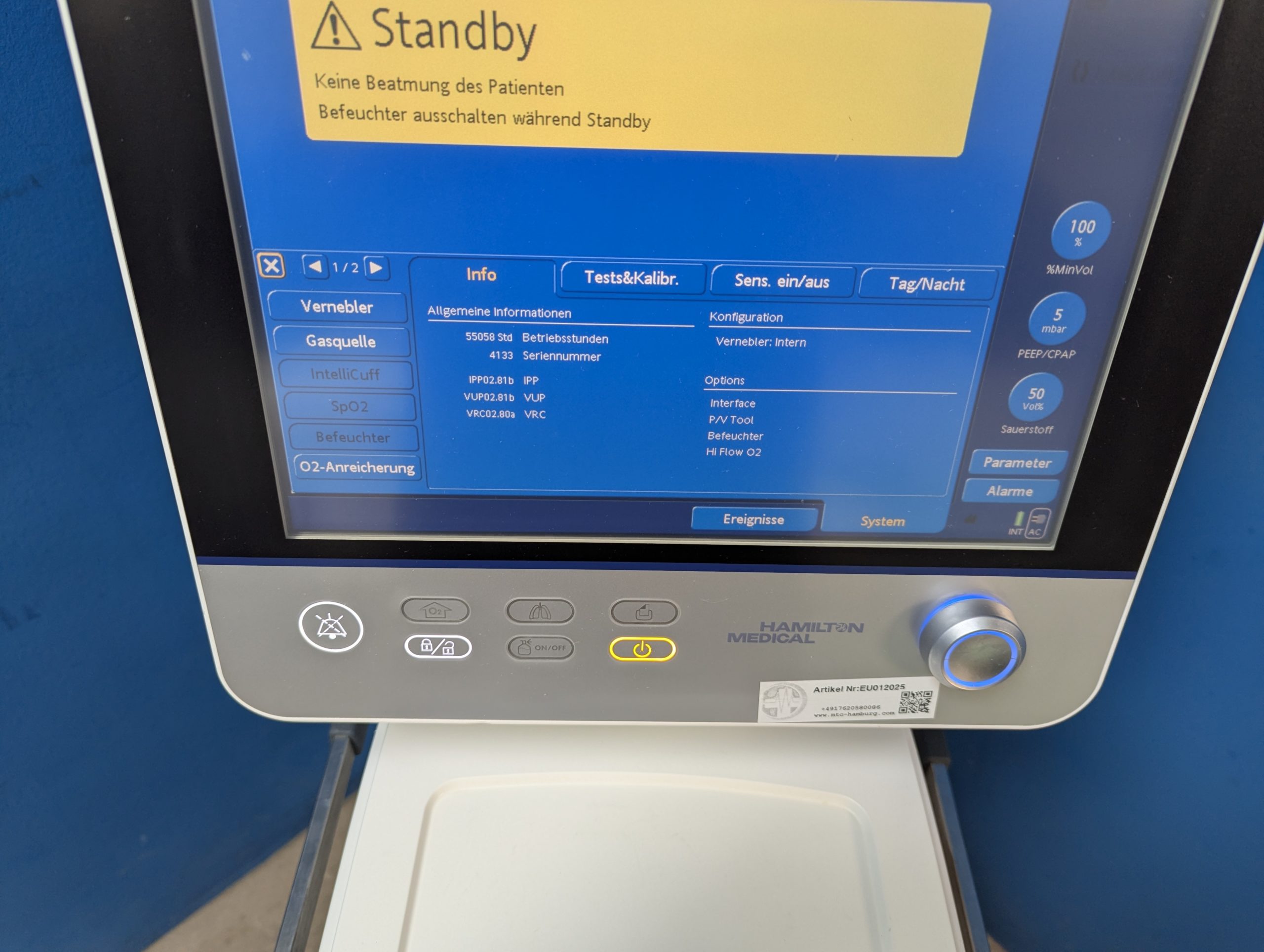 Hamilton G5 CO2 + Aernob Beatmungsgerät mit einem Hamilton