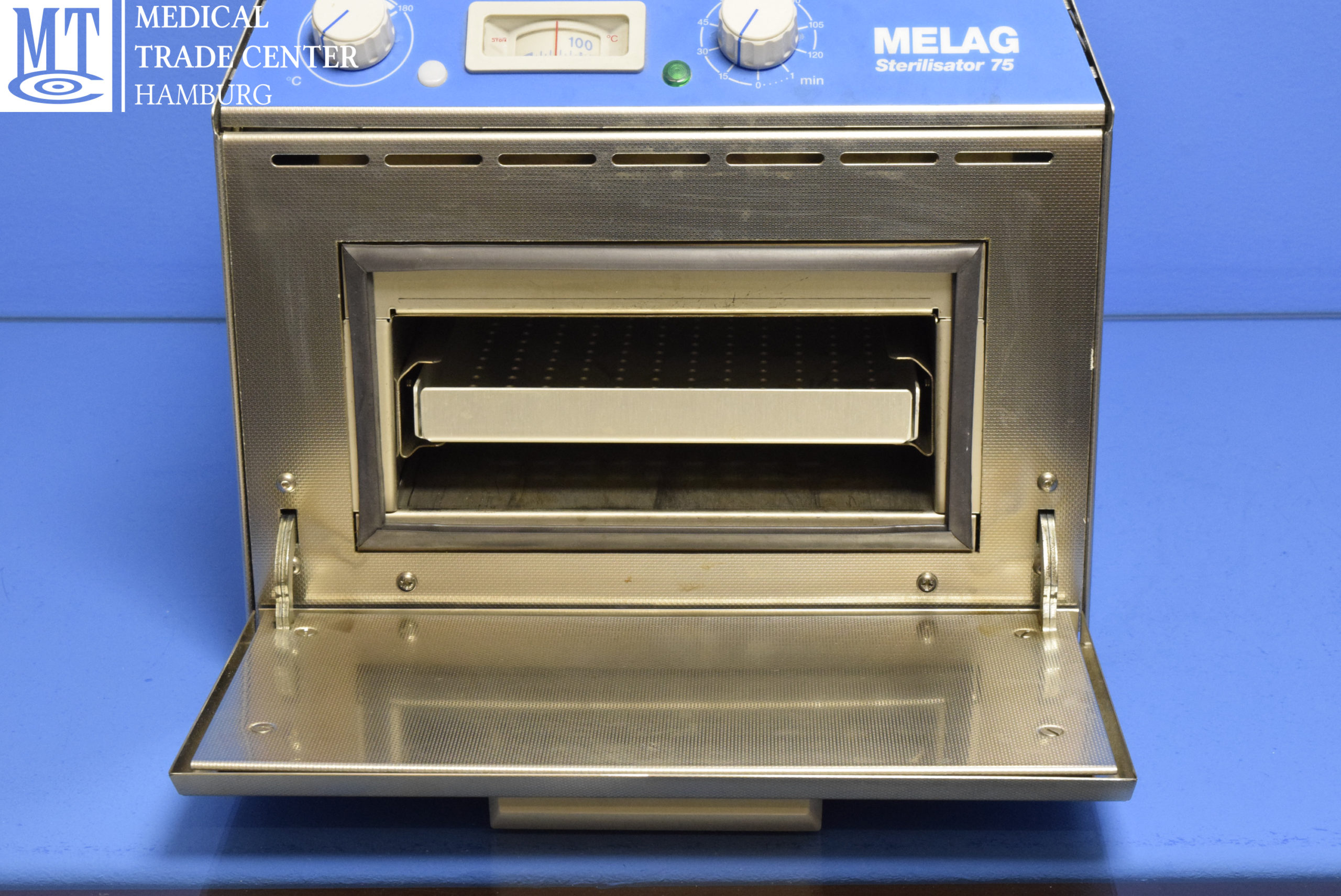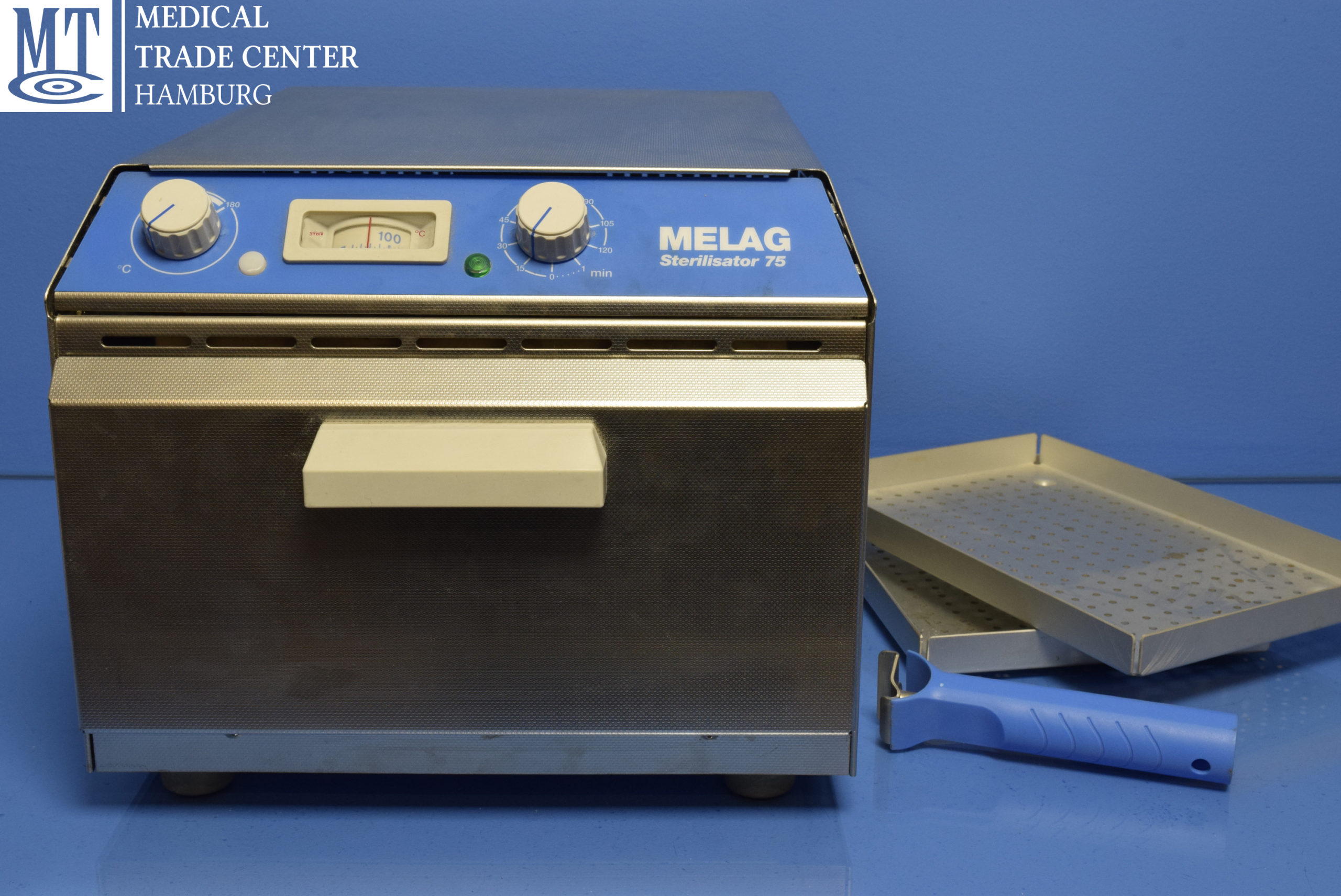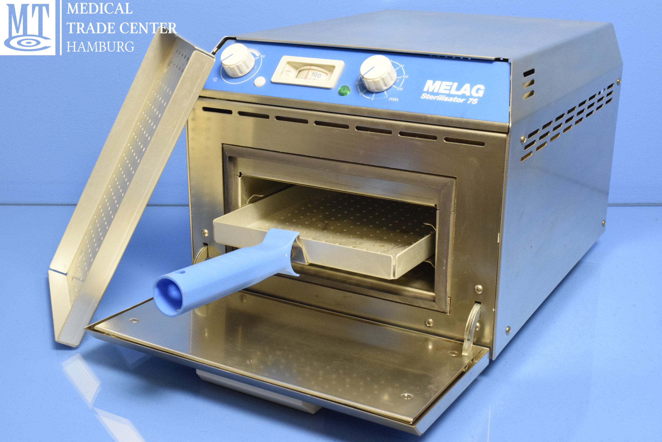 Heißluftsterilisator mit 2 Einschubblechen und Handgriff.Mechanische Luftbewegung für perfekten Wärmeausgleich