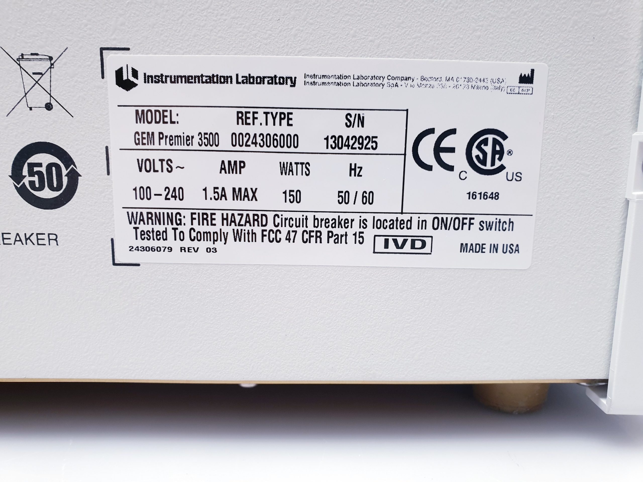 INSTRUMENTATION LABORATORY GEM Premier 3500