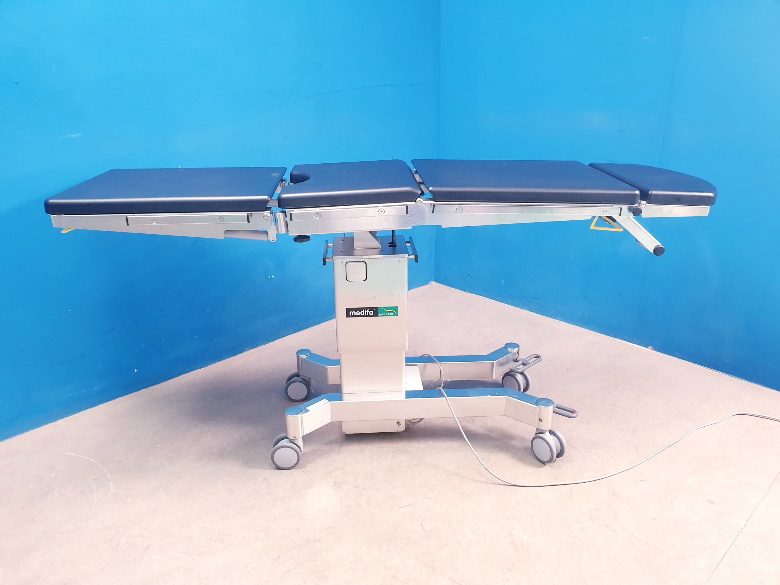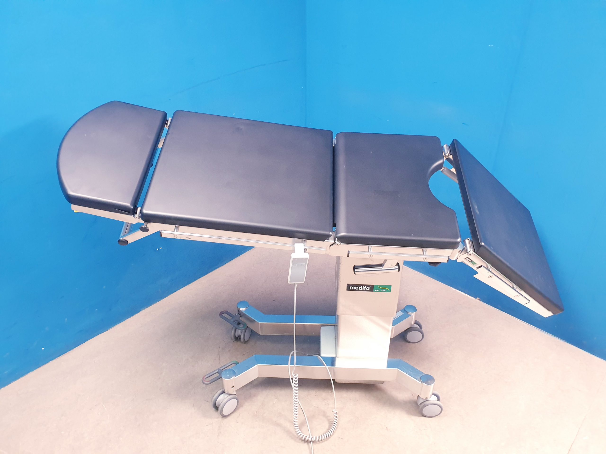 - Flexibilität: Der Medifa Mat 5000 kann in verschiedenen Positionen arretiert werden, um chirurgische Zugänge bestmöglich zu ermöglichen. Die Liegefläche ist kompatibel mit gängigen OP-Zubehörteilen und Modulaufsätzen.