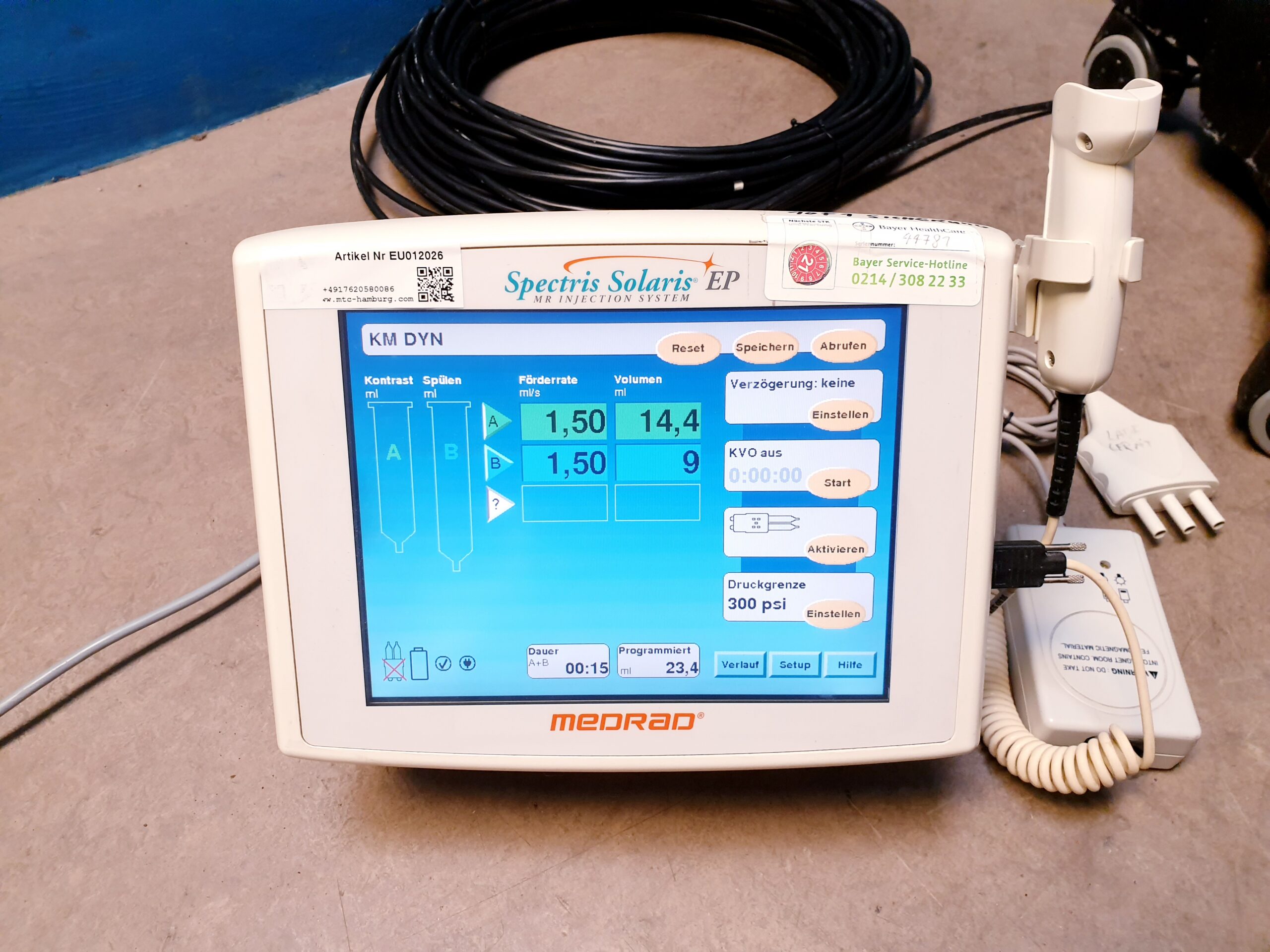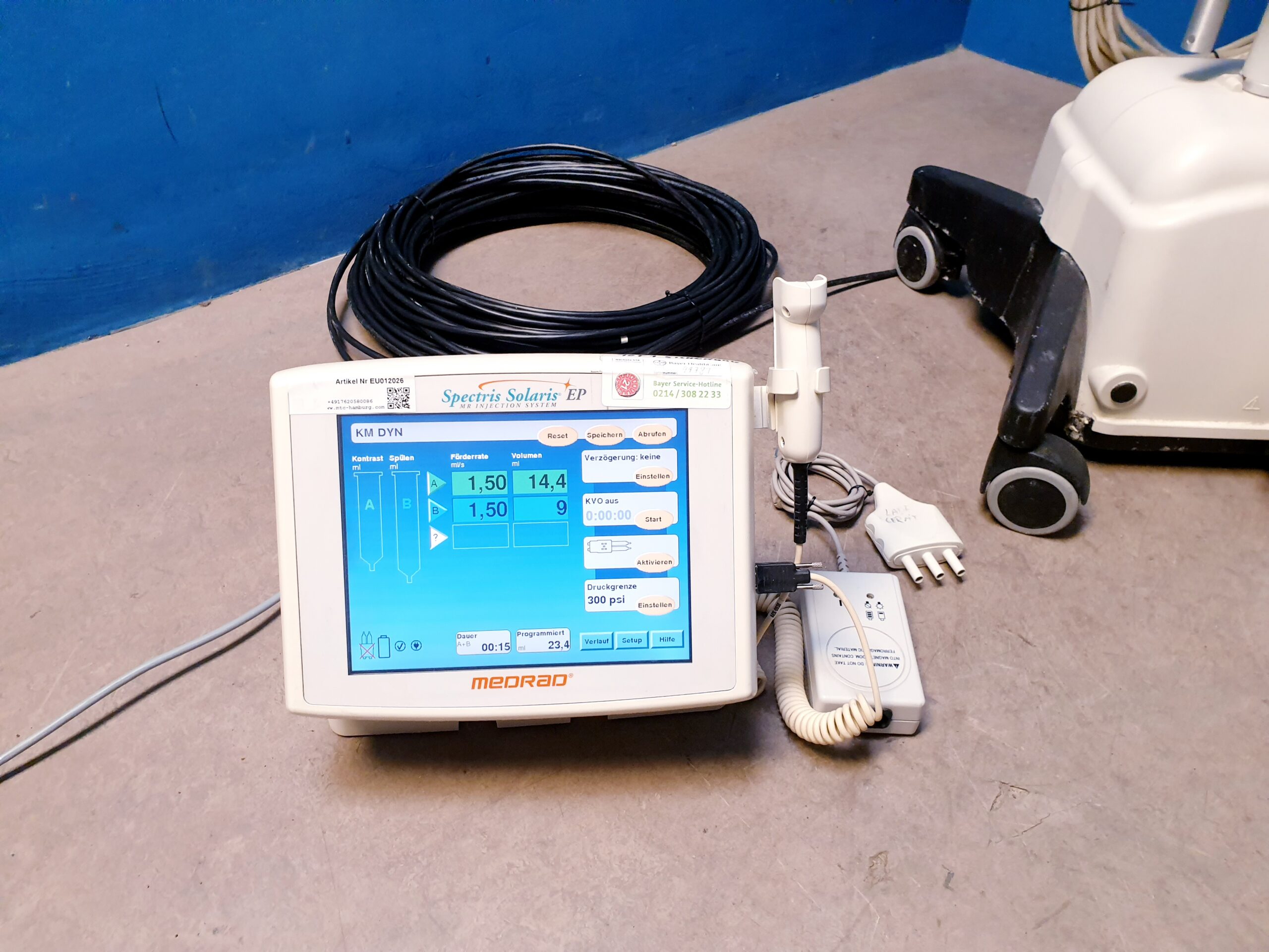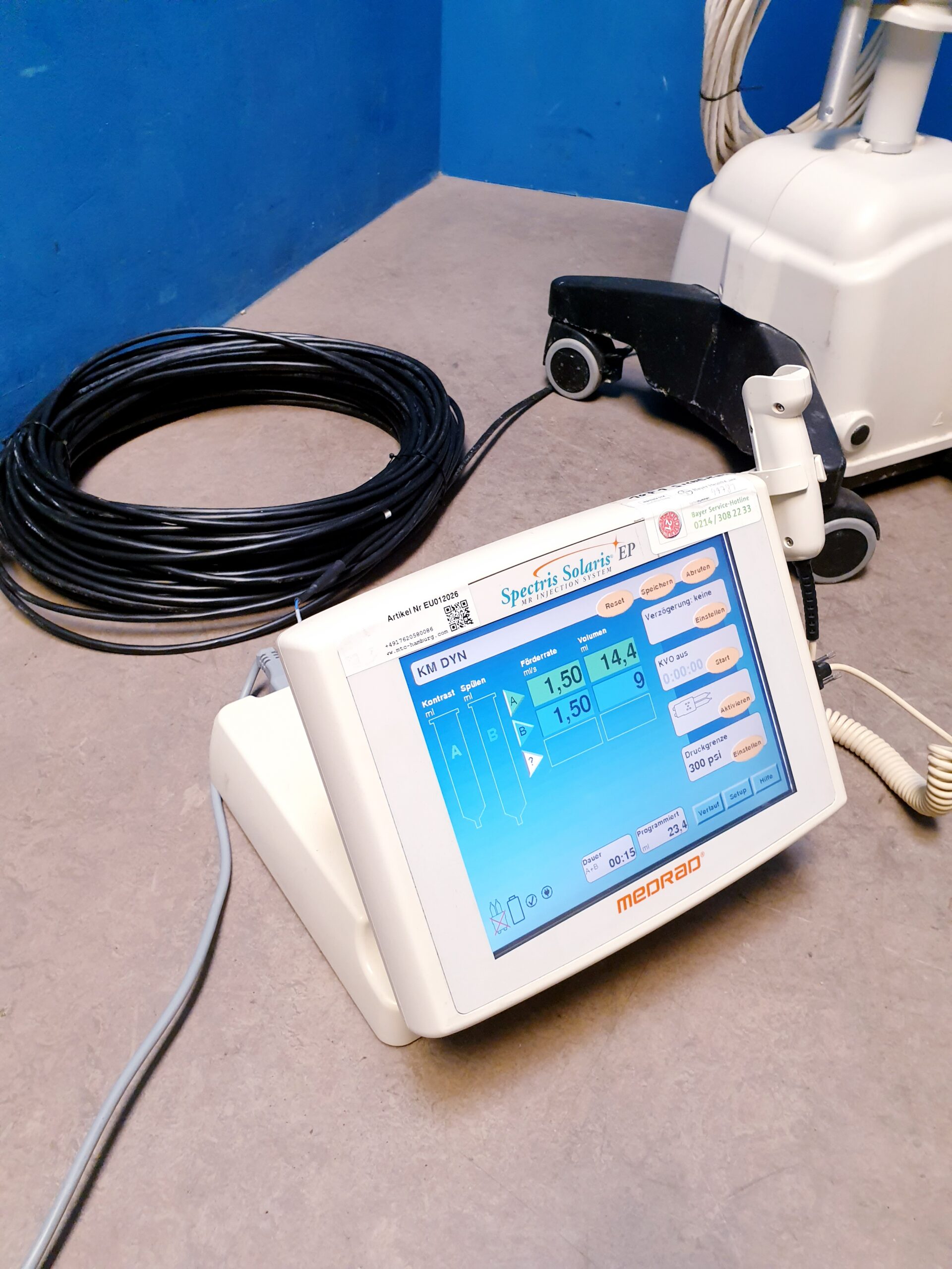 - Benutzerfreundlichkeit: Das Medrad Spectris Solaris verfügt über ein intuitives Benutzerinterface, das es Radiologen und medizinischem Personal erleichtert, die Injektionen zu planen und durchzuführen.