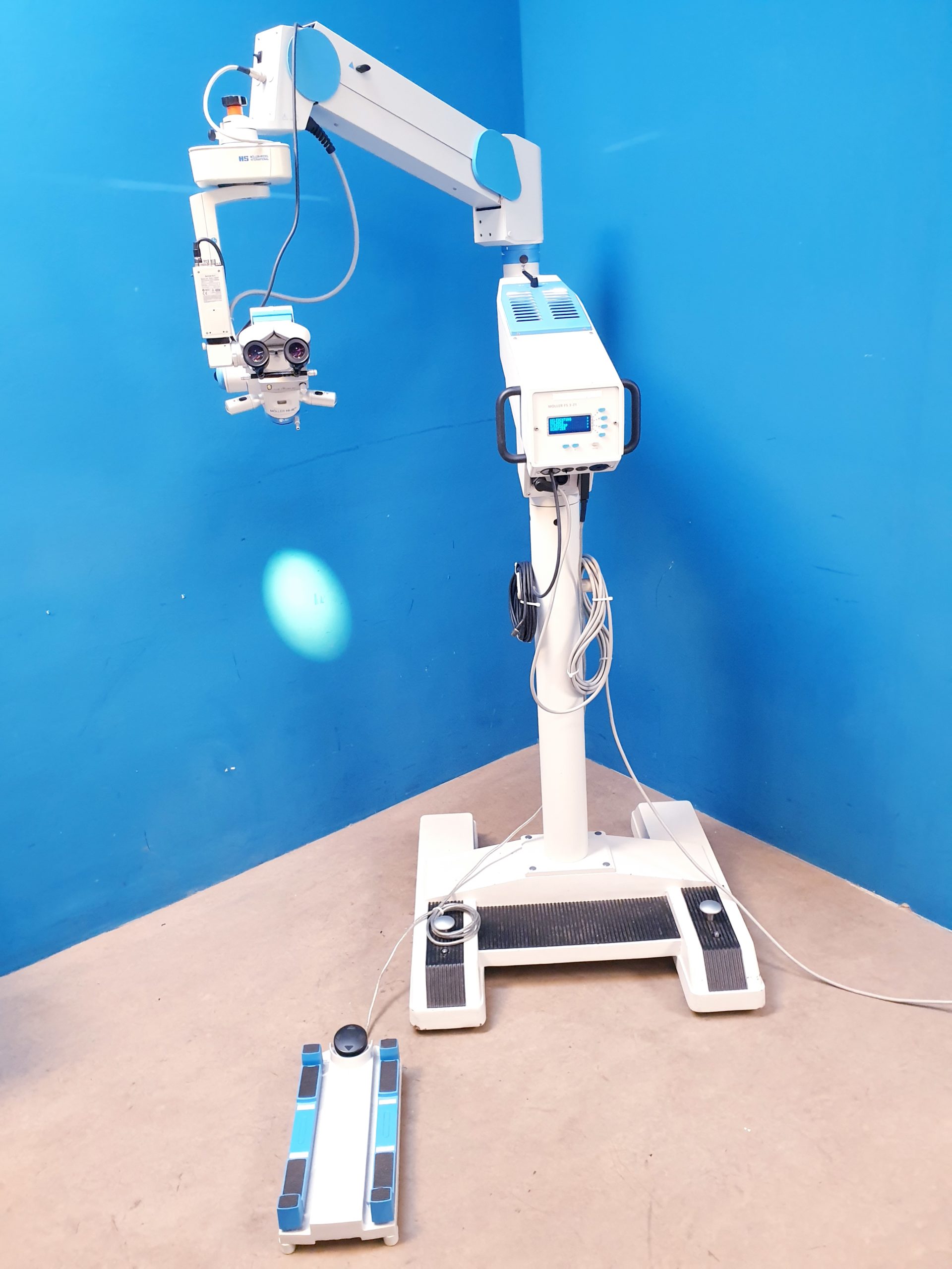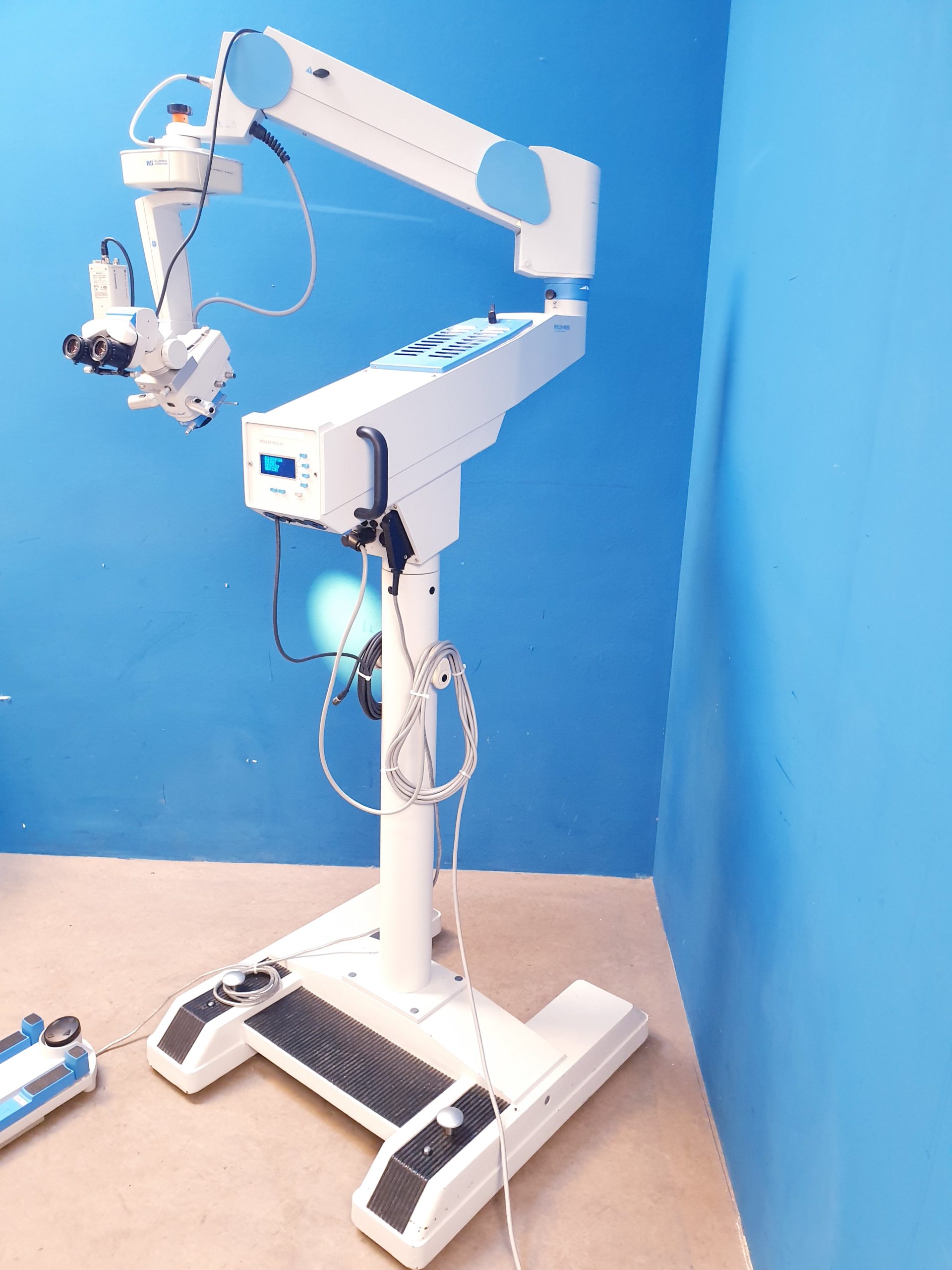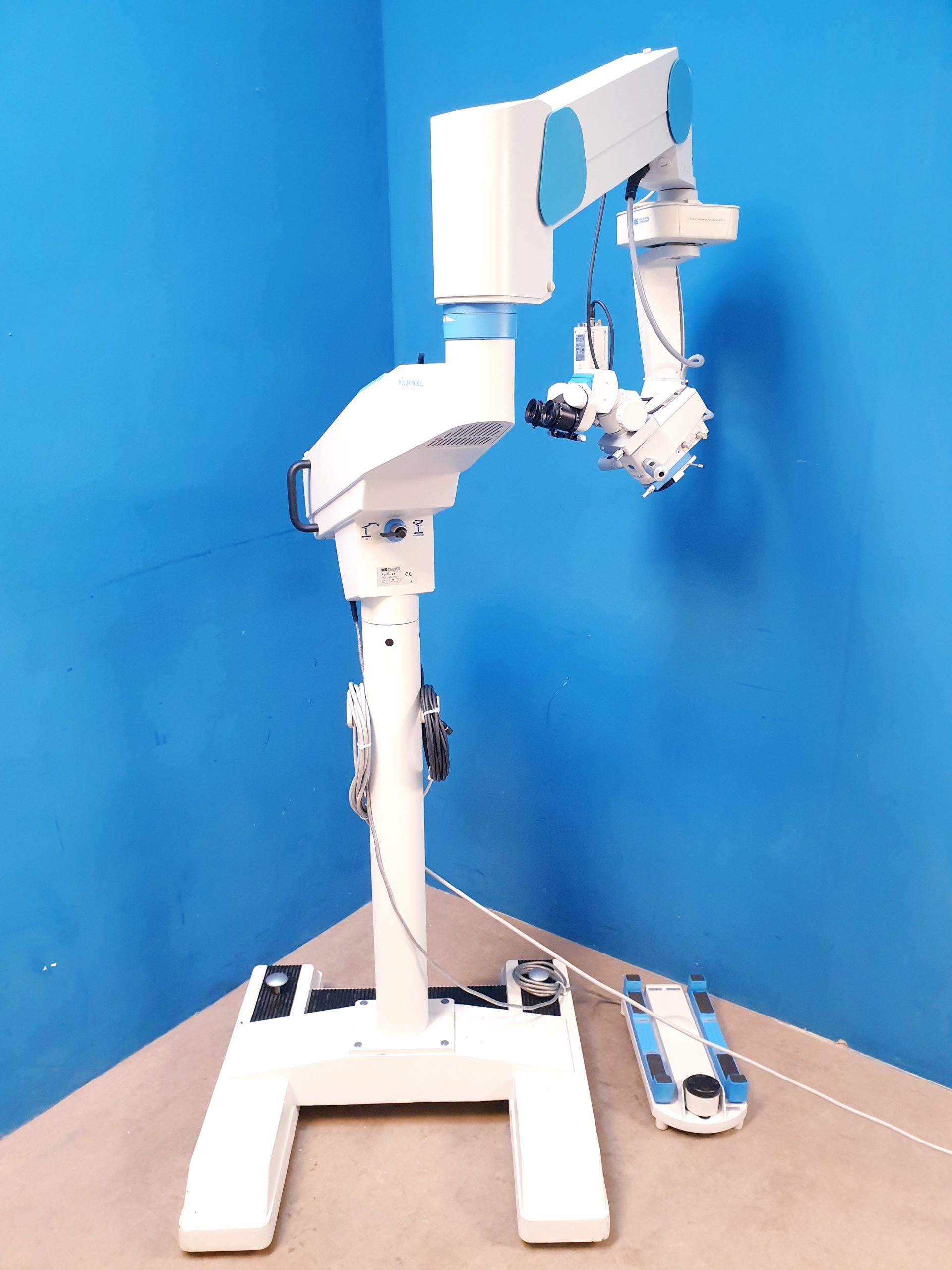 Das Möller Wedel HI-R900 auf FS3-21 Fuß ist ein hochwertiges ophthalmologisches Mikroskop, das durch seine präzise Optik und stabile Bauweise eine exzellente Sicht bei diagnostischen und therapeutischen Eingriffen gewährleistet. Mit der Modellbezeichnung 20000 – E24000 – ep bietet es modernste Technik für höchste Anforderungen in der Augenchirurgie.