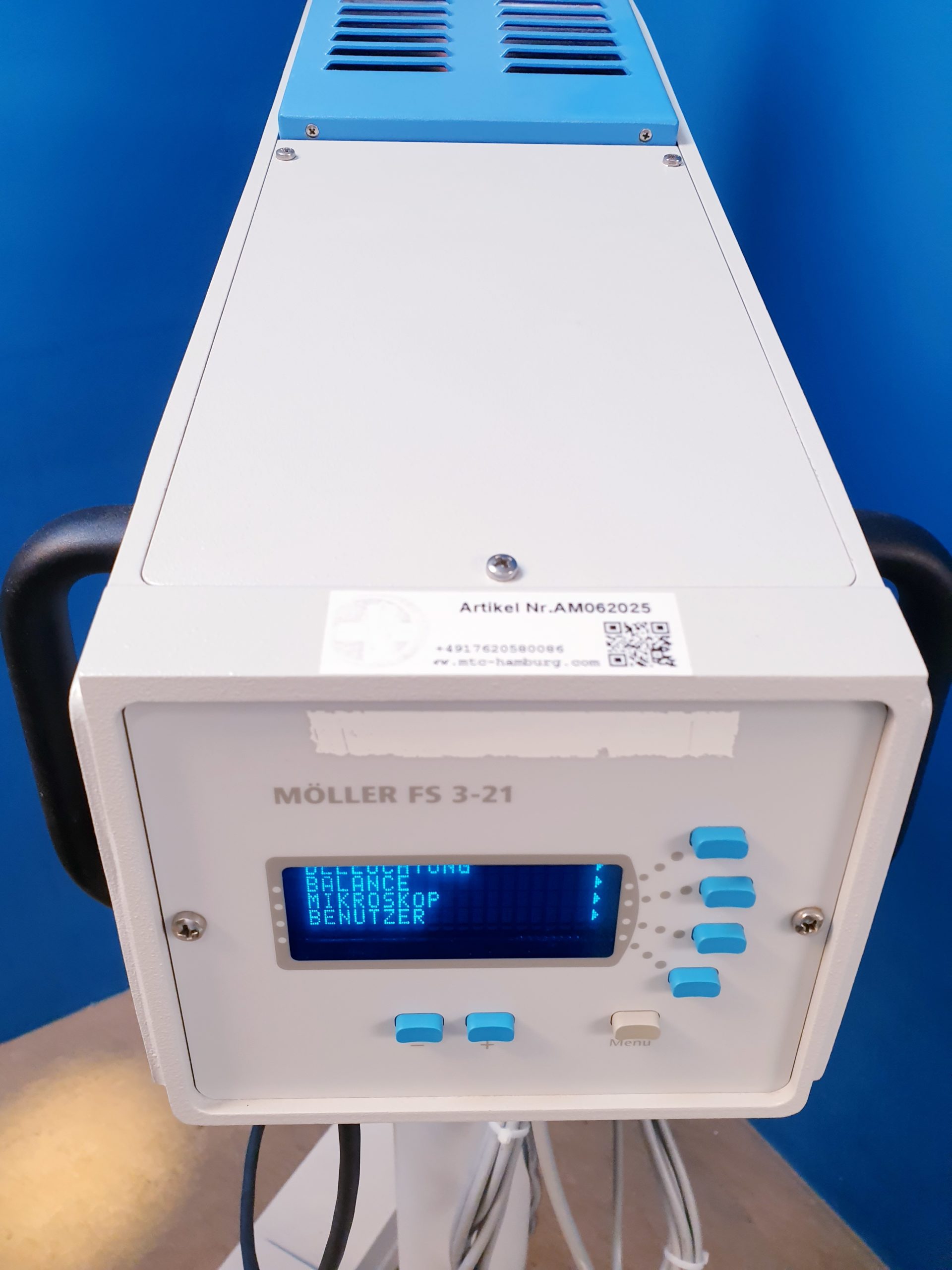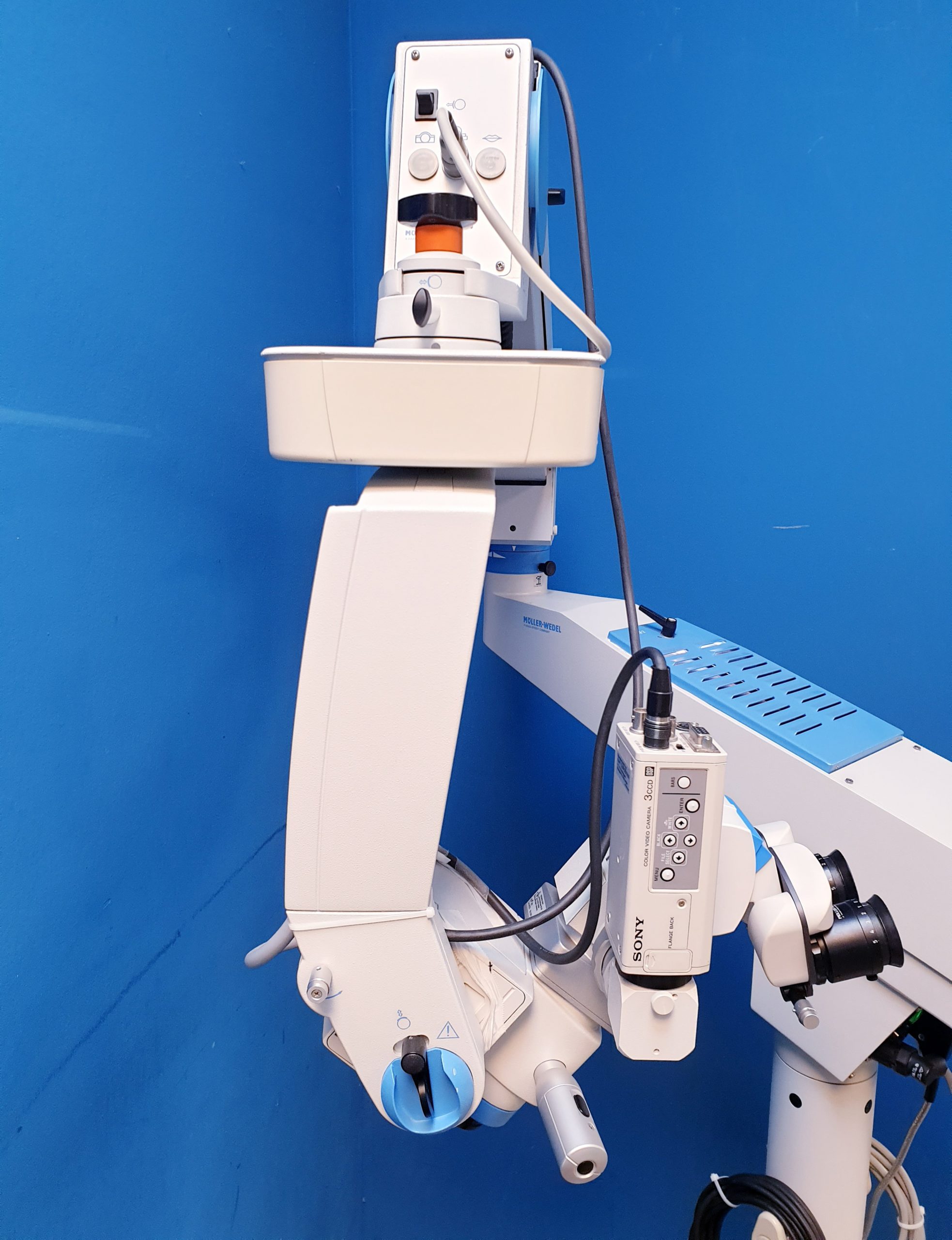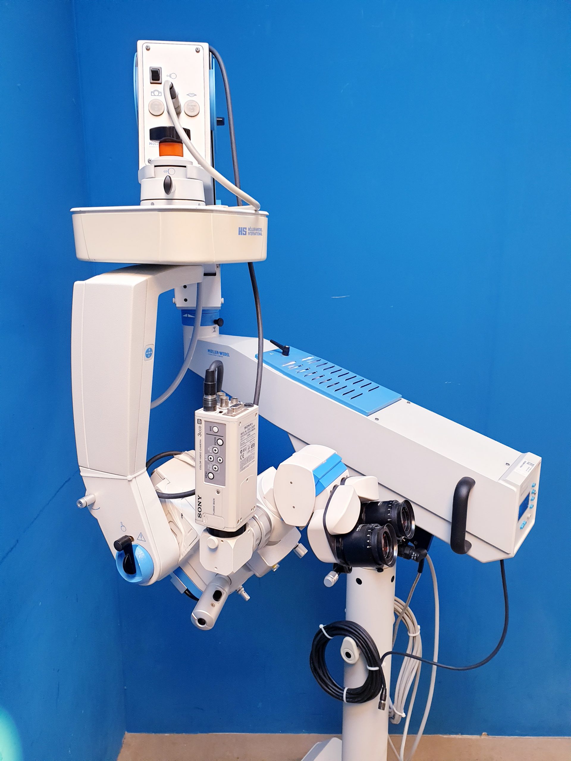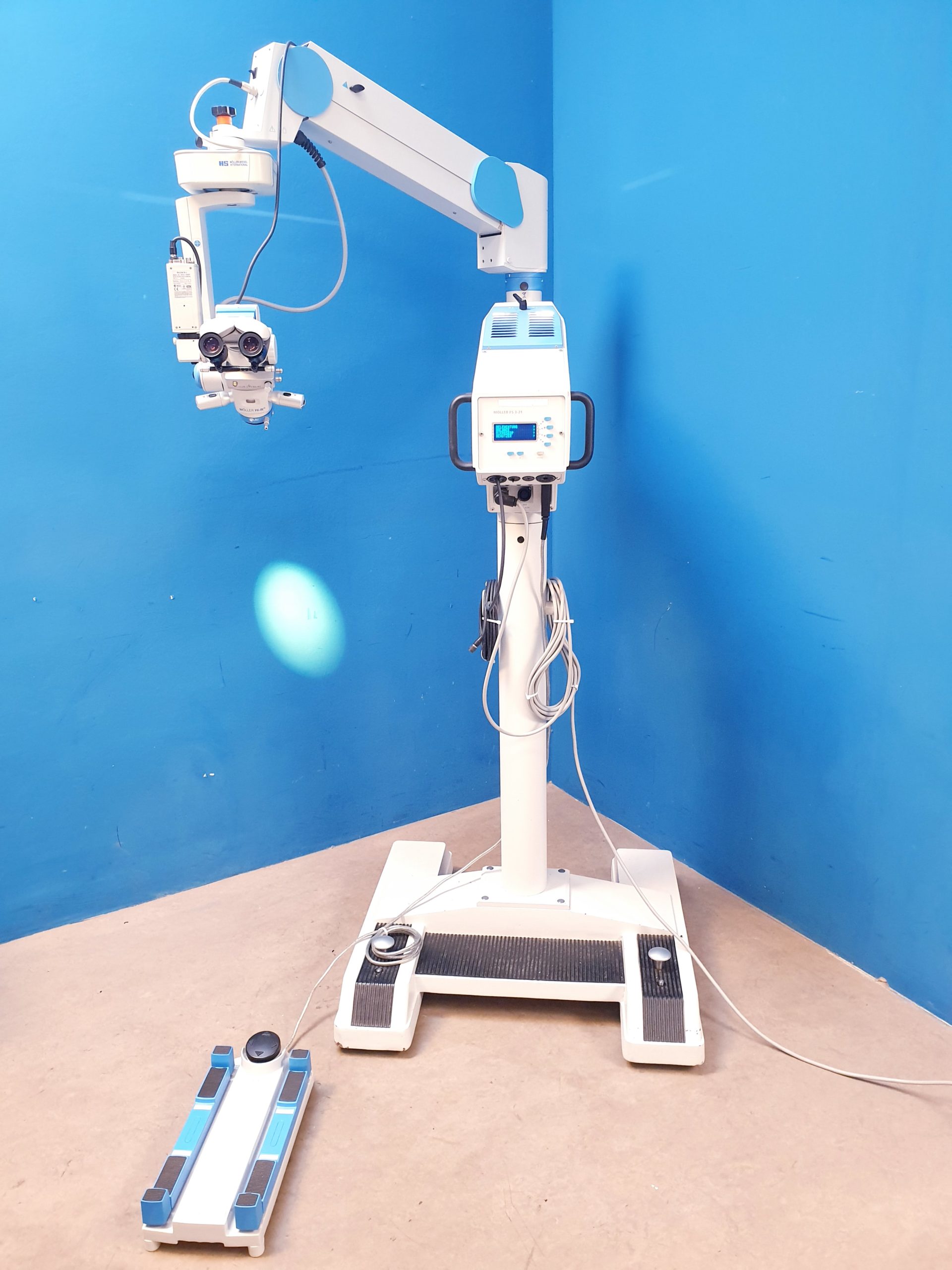 Das Möller Wedel HI-R900 auf FS3-21 Fuß ist ein hochwertiges ophthalmologisches Mikroskop, das durch seine präzise Optik und stabile Bauweise eine exzellente Sicht bei diagnostischen und therapeutischen Eingriffen gewährleistet. Mit der Modellbezeichnung 20000 – E24000 – ep bietet es modernste Technik für höchste Anforderungen in der Augenchirurgie.