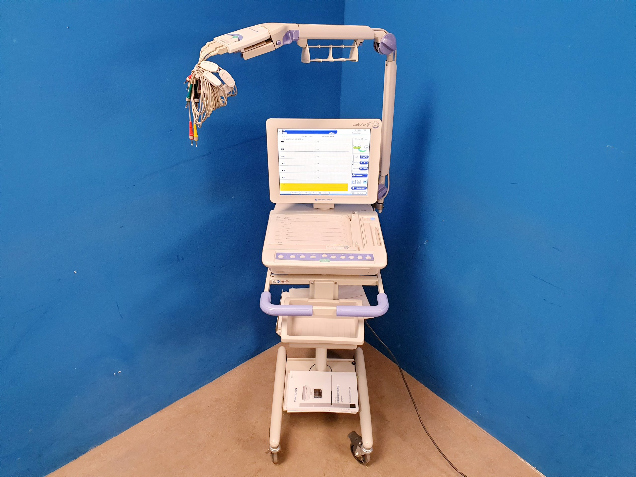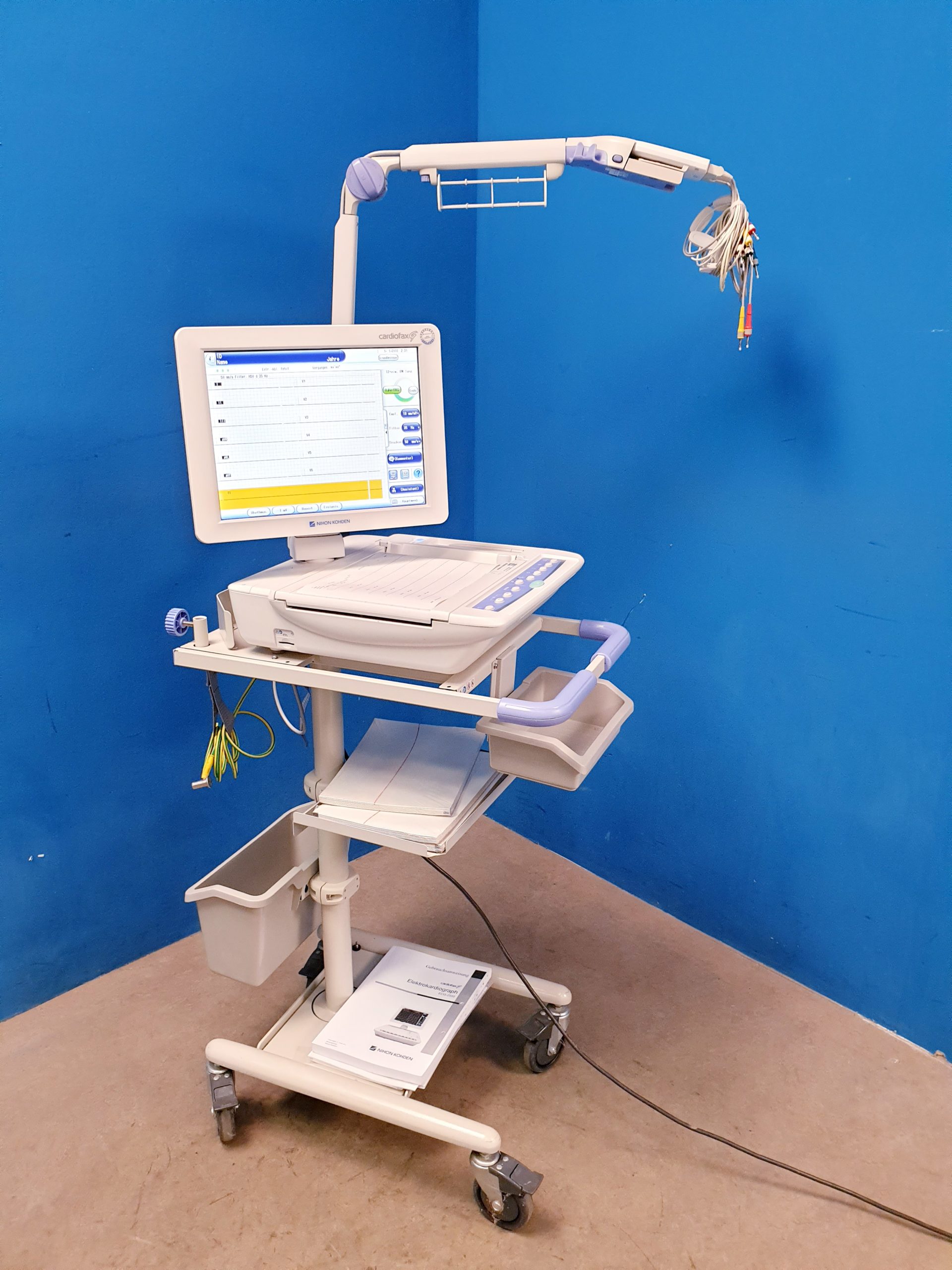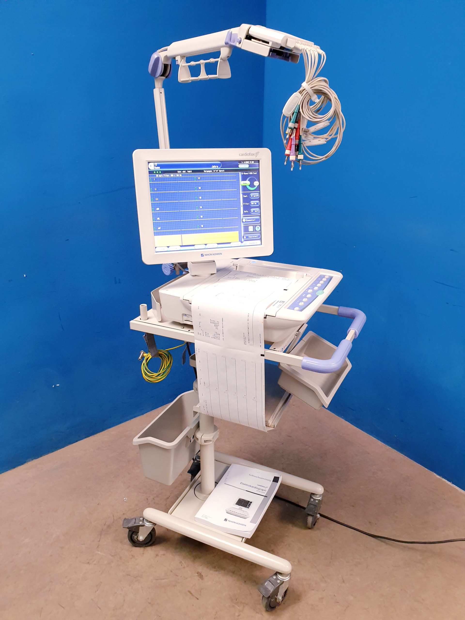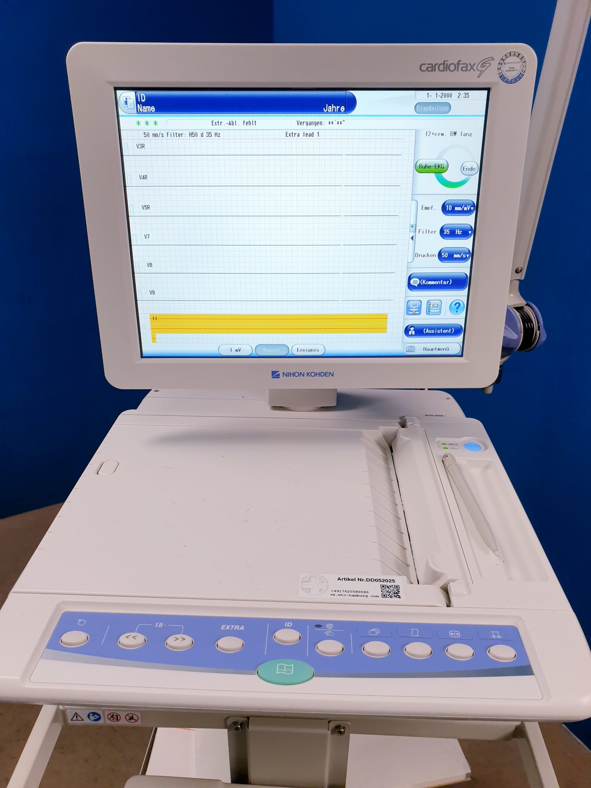 Der Nihon Kohden Cardiofax G ECG-2550 (ECG2550) ist ein hochmodernes Elektrokardiographie-Gerät (EKG), das speziell für den klinischen Einsatz entwickelt wurde. Dieses Gerät bietet präzise und zuverlässige EKG-Messungen und unterstützt medizinisches Fachpersonal bei der Diagnose und Überwachung kardiovaskulärer Erkrankungen.