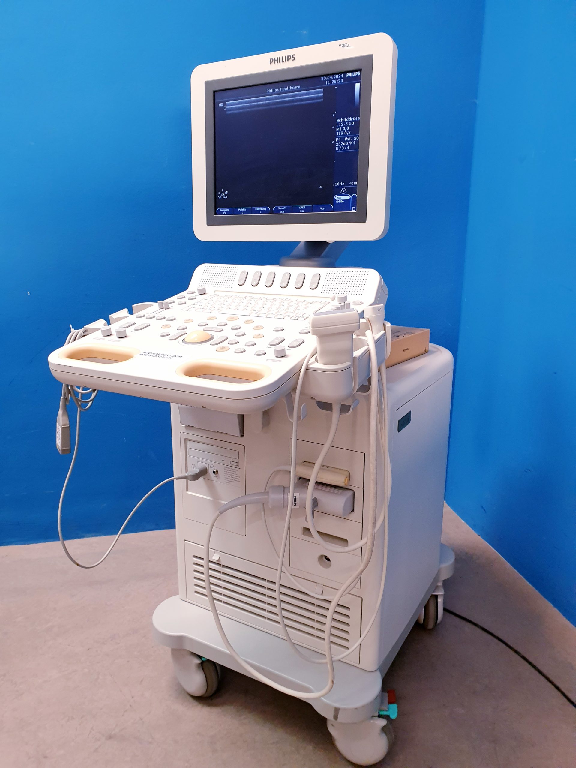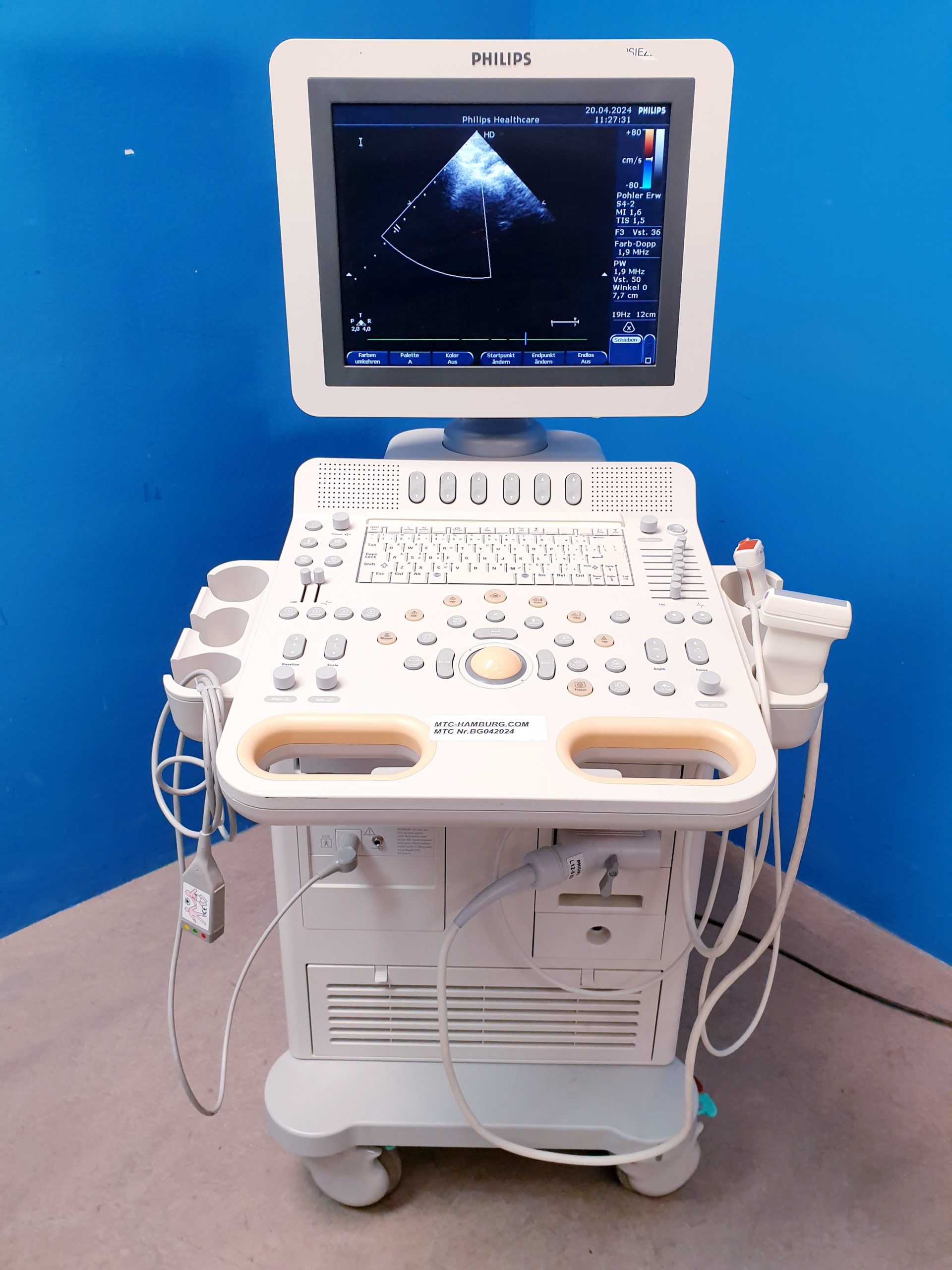 Fazit: Das Philips HD7 XE Ultraschallgerät mit S4-2 Echo Sonde und L12-5 Linear Sonde bietet eine exzellente Bildqualität, vielseitige Einsatzmöglichkeiten und präzise kardiovaskuläre Diagnostik dank modernster Doppler-Technologie. Es unterstützt medizinisches Fachpersonal bei der schnellen und sicheren Beurteilung verschiedenster Krankheitsbilder.
