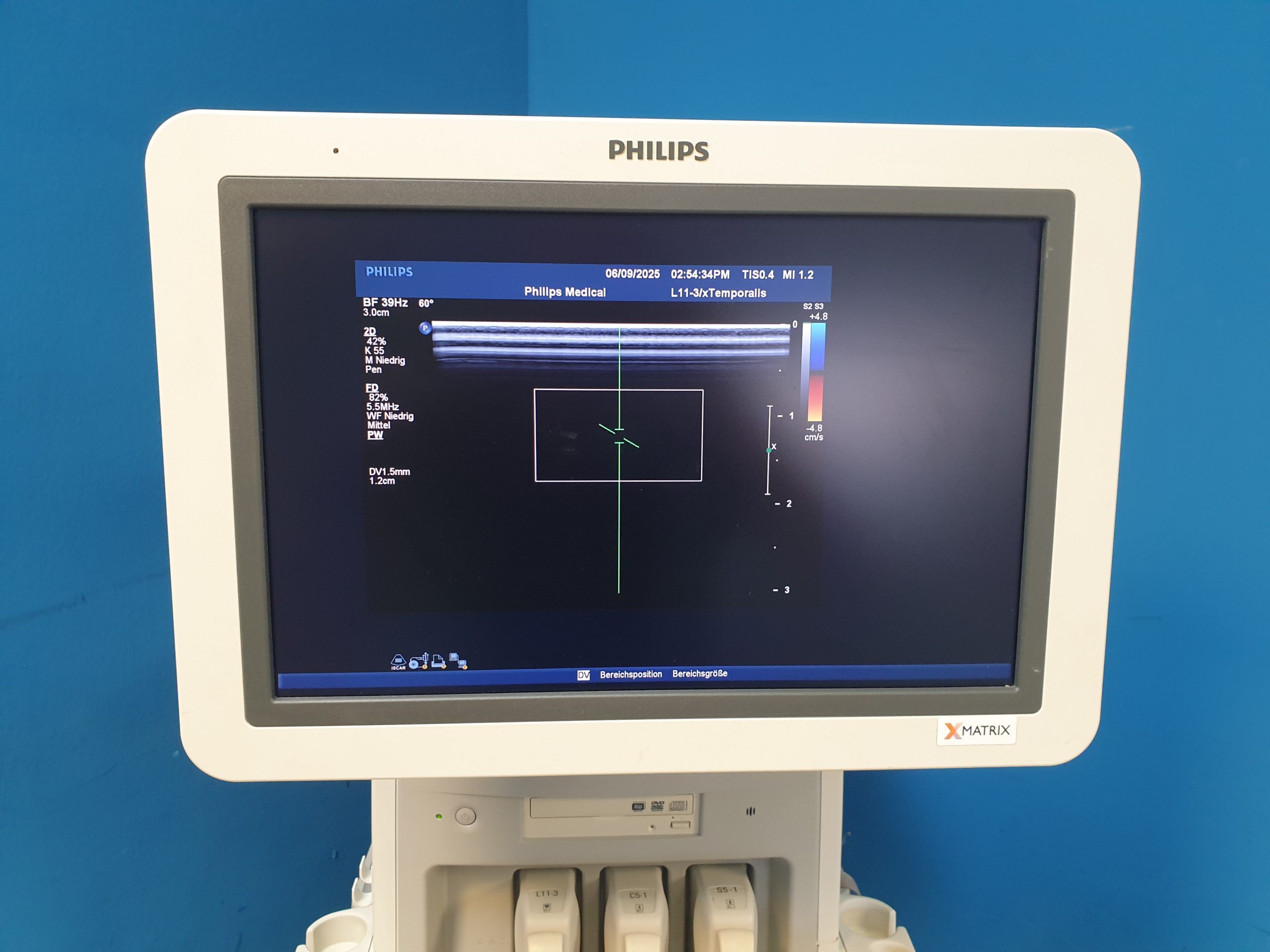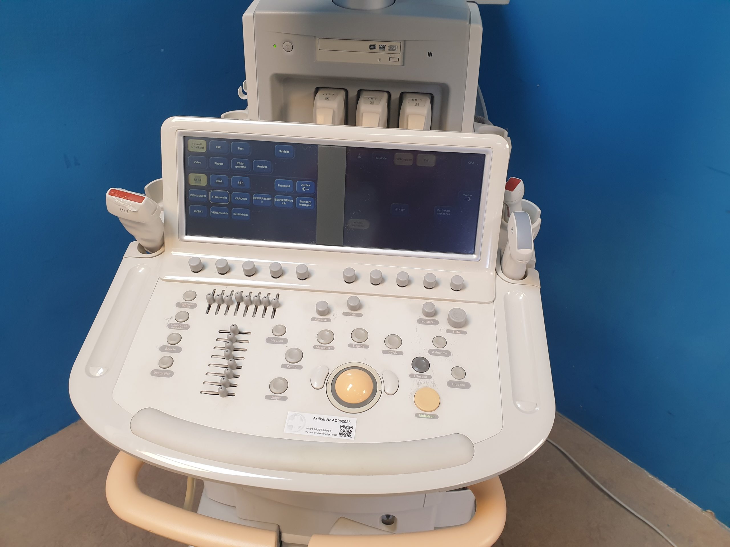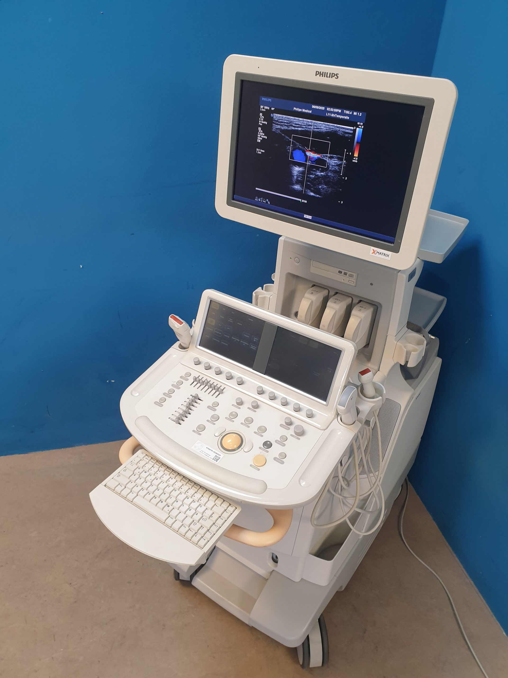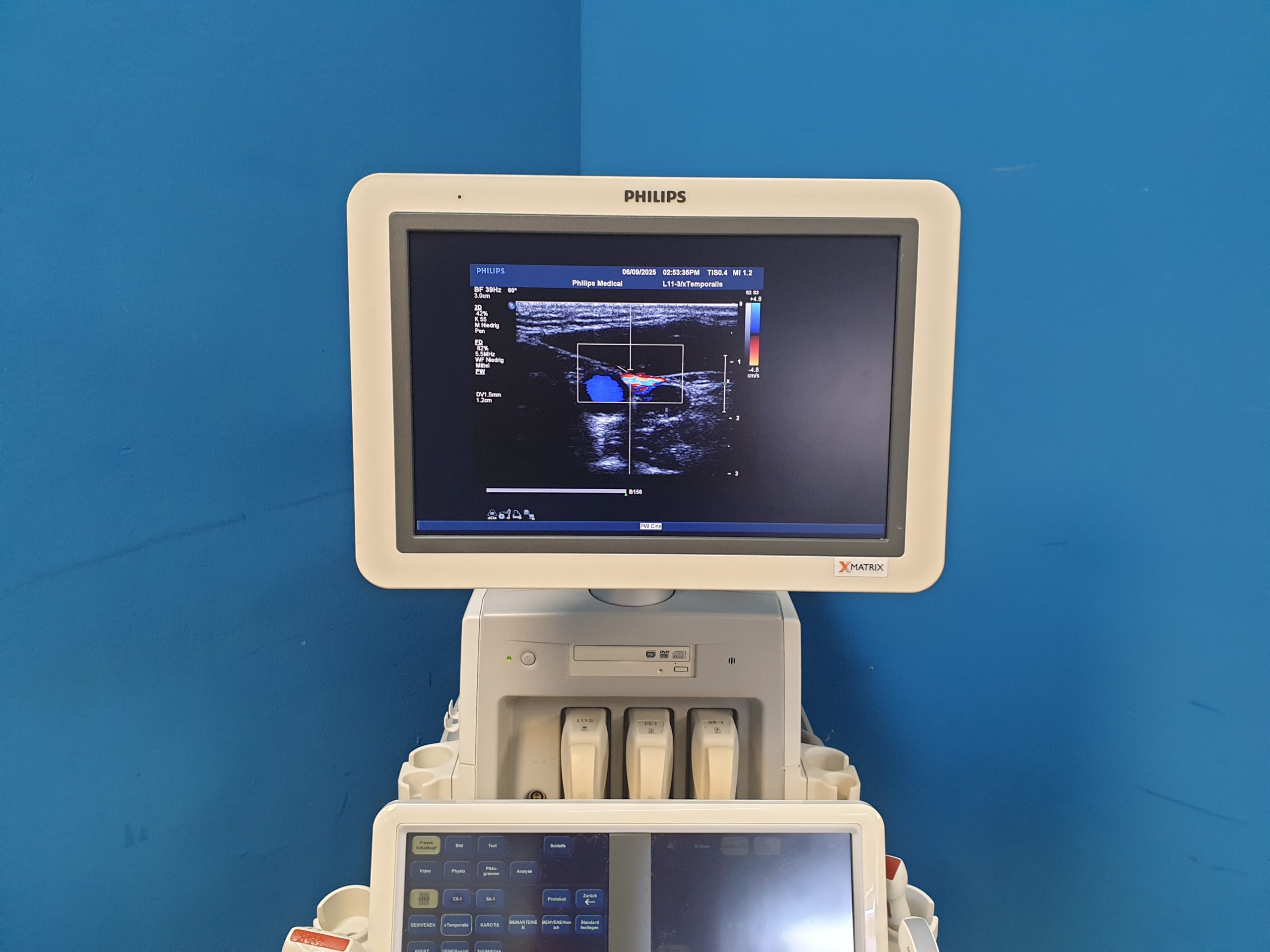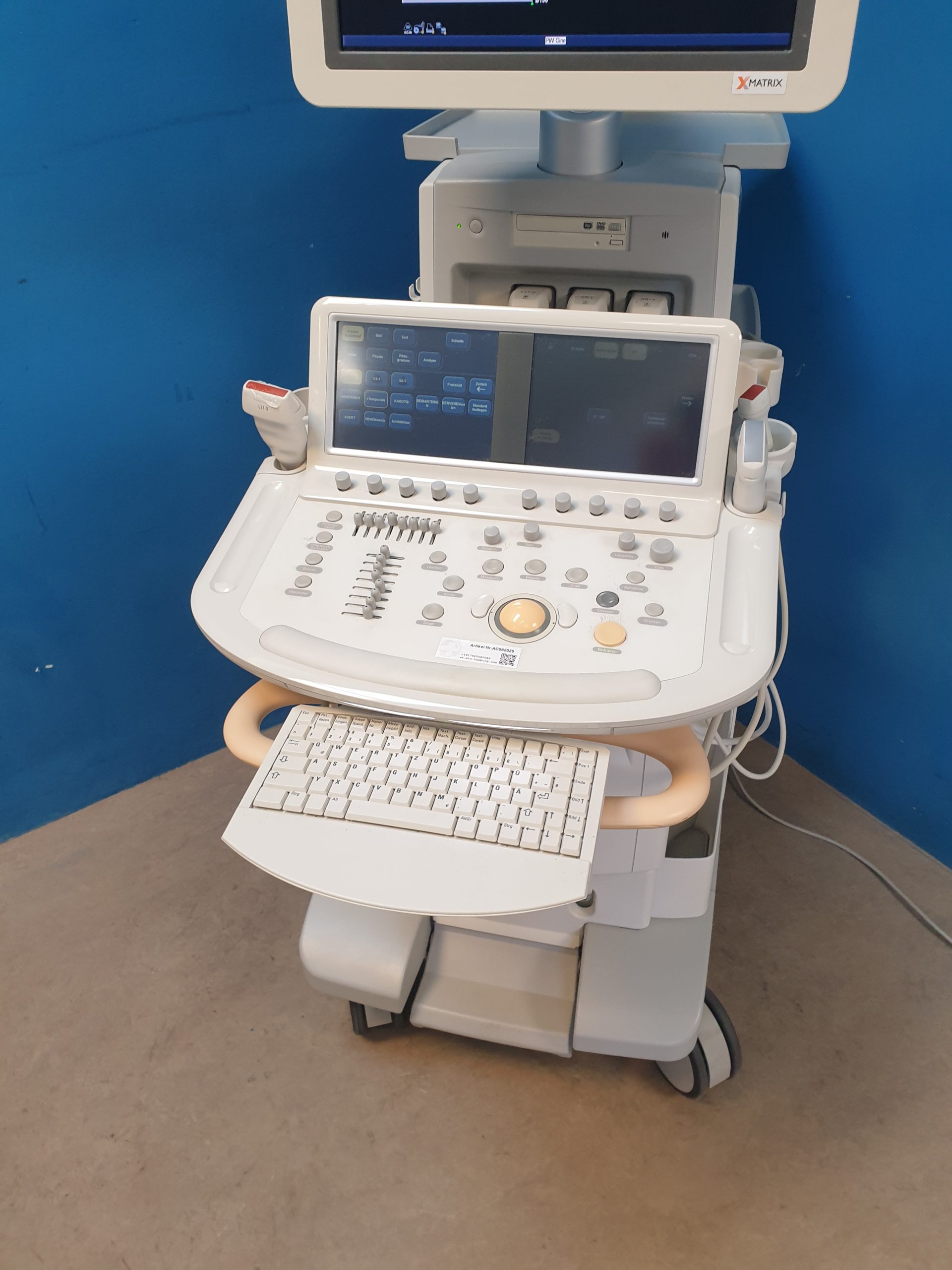 - Ergonomisches Design: Intuitive Benutzeroberfläche, flexible Sondenhalterungen und ein höhenverstellbarer Monitor garantieren einen komfortablen Arbeitsablauf.