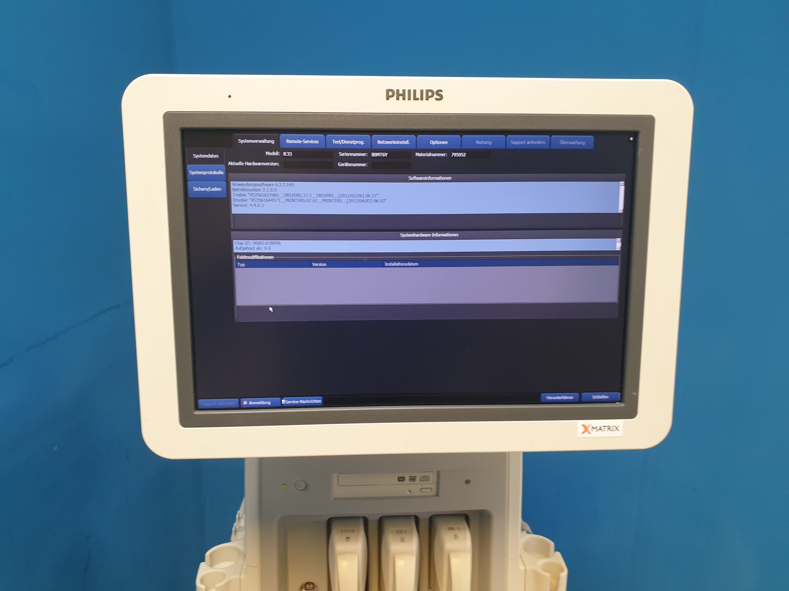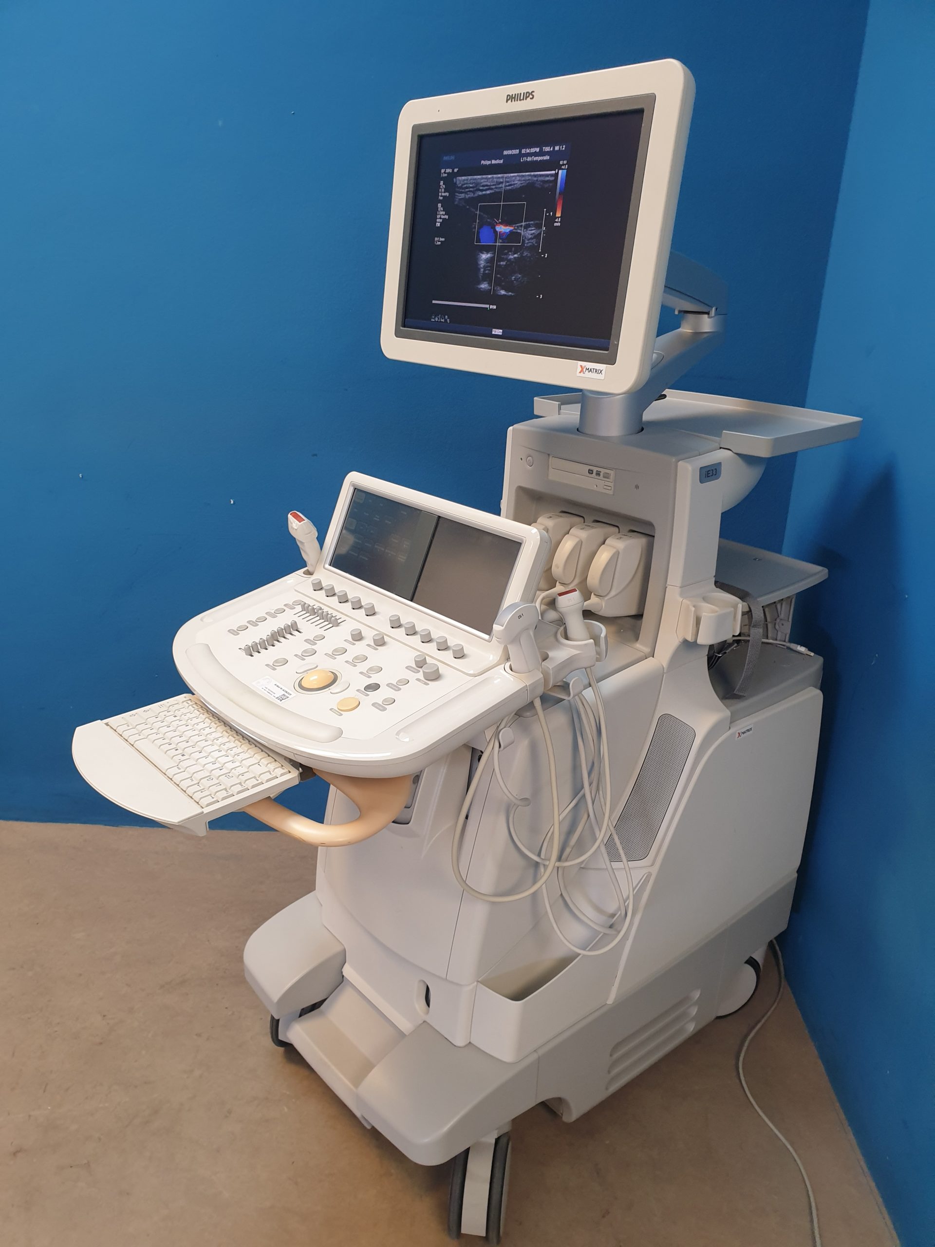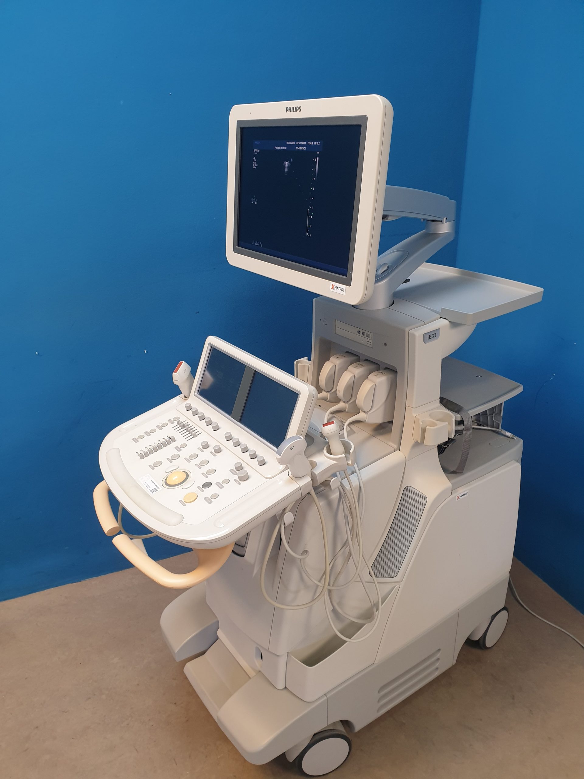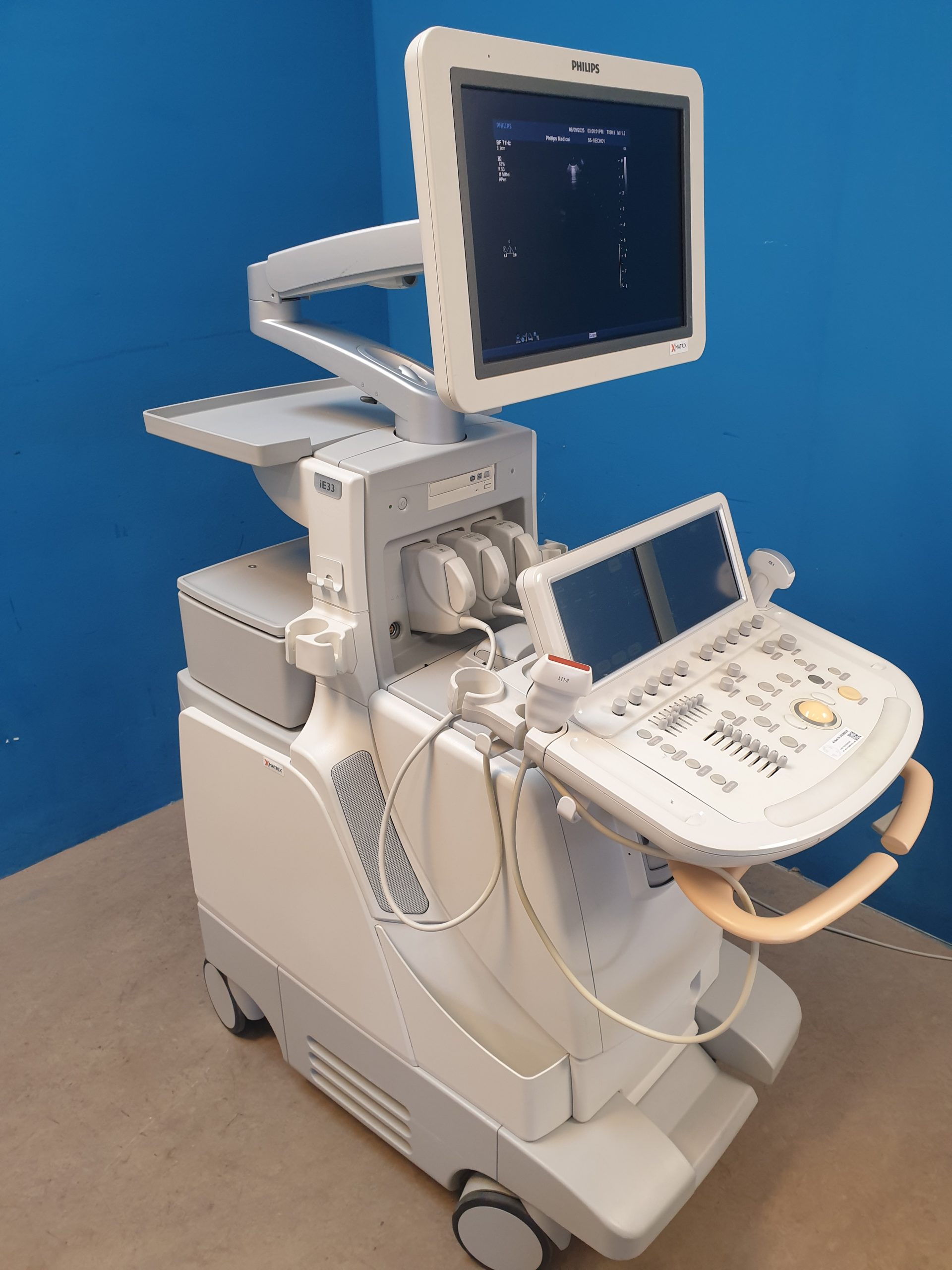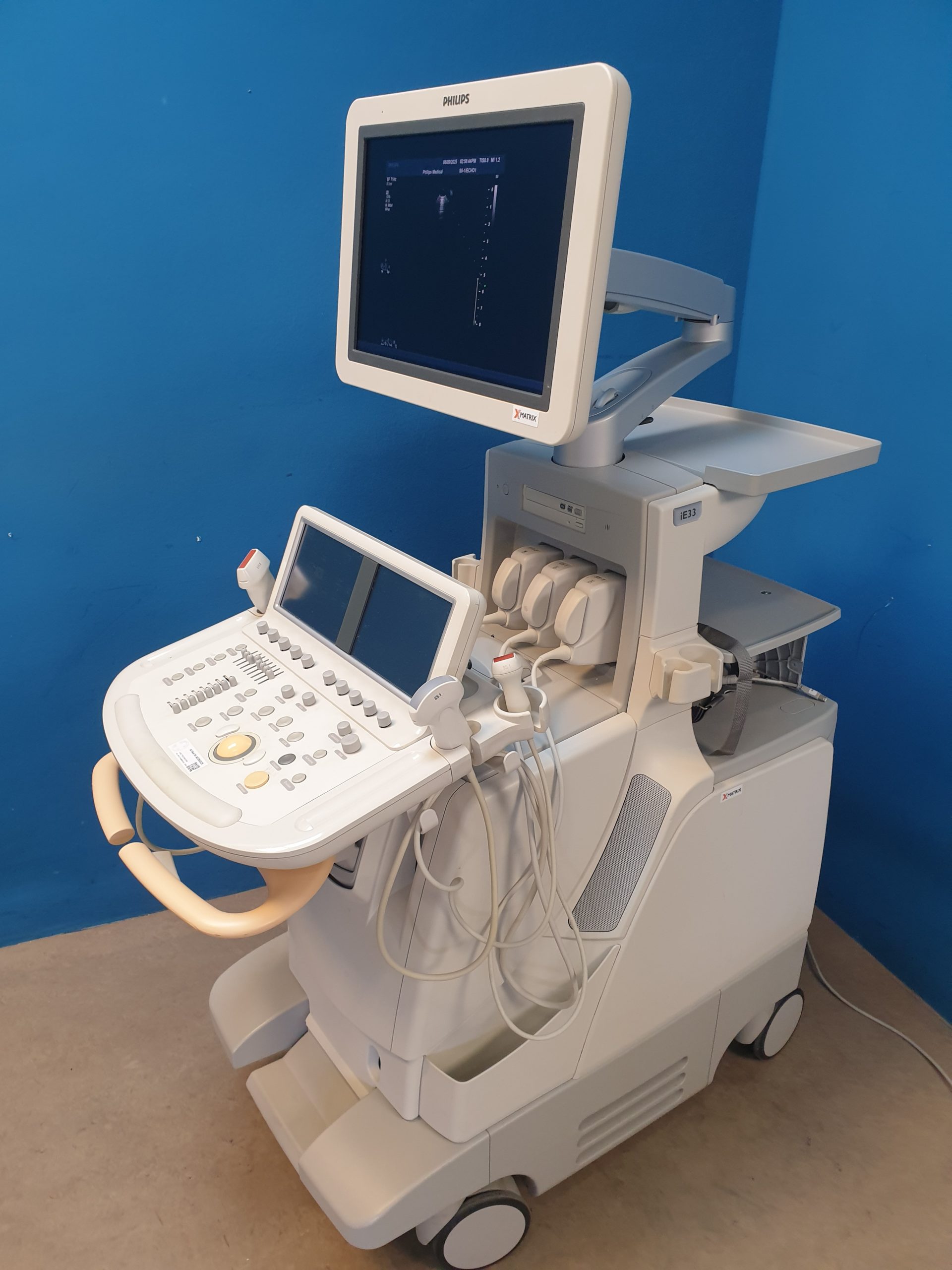 - iE33 Basiseinheit: Leistungsstarkes Ultraschallsystem mit fortschrittlicher Bildverarbeitung und umfangreichen Mess- und Analysefunktionen.