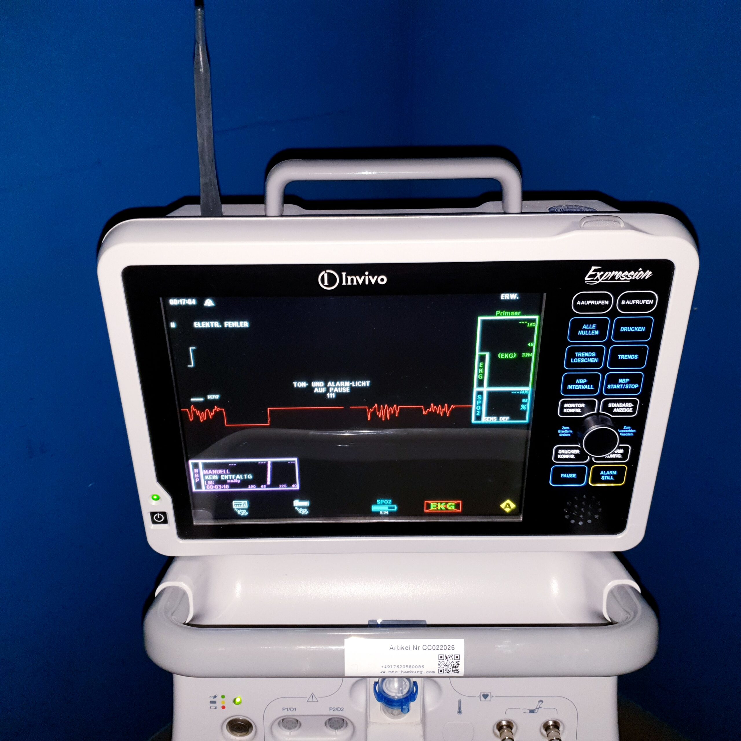 Der Philips Invivo Expression MRI Monitor ist die ideale Lösung für Krankenhäuser und Diagnostikzentren, die eine zuverlässige Patientenüberwachung während MRT-Untersuchungen gewährleisten möchten. Durch die Kombination aus modernster Technologie, Benutzerfreundlichkeit und umfassendem Zubehör stellt dieses System eine wertvolle Unterstützung für medizinisches Fachpersonal dar.