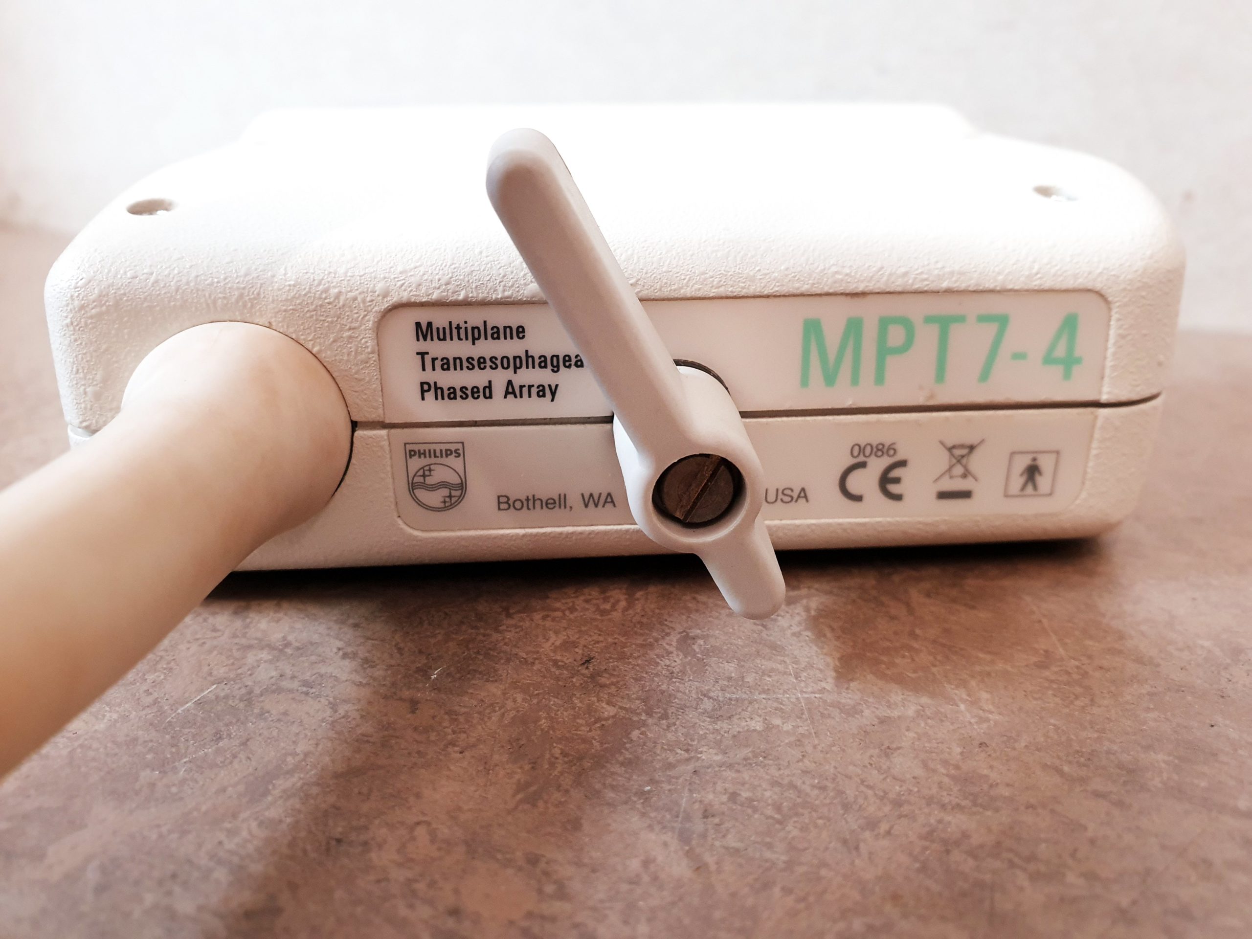 Der Philips MPT7-4 ist ein multiplanarer transösophagealer Echokardiographie-Schallkopf (TEE), der mit den Ultraschallgeräten ATL HDI-1000, HDI-3000 und HDI-5000 kompatibel ist. Er arbeitet im Frequenzbereich von 4,0 bis 7,0 MHz und eignet sich für hochauflösende kardiologische Untersuchungen über die Speiseröhre.