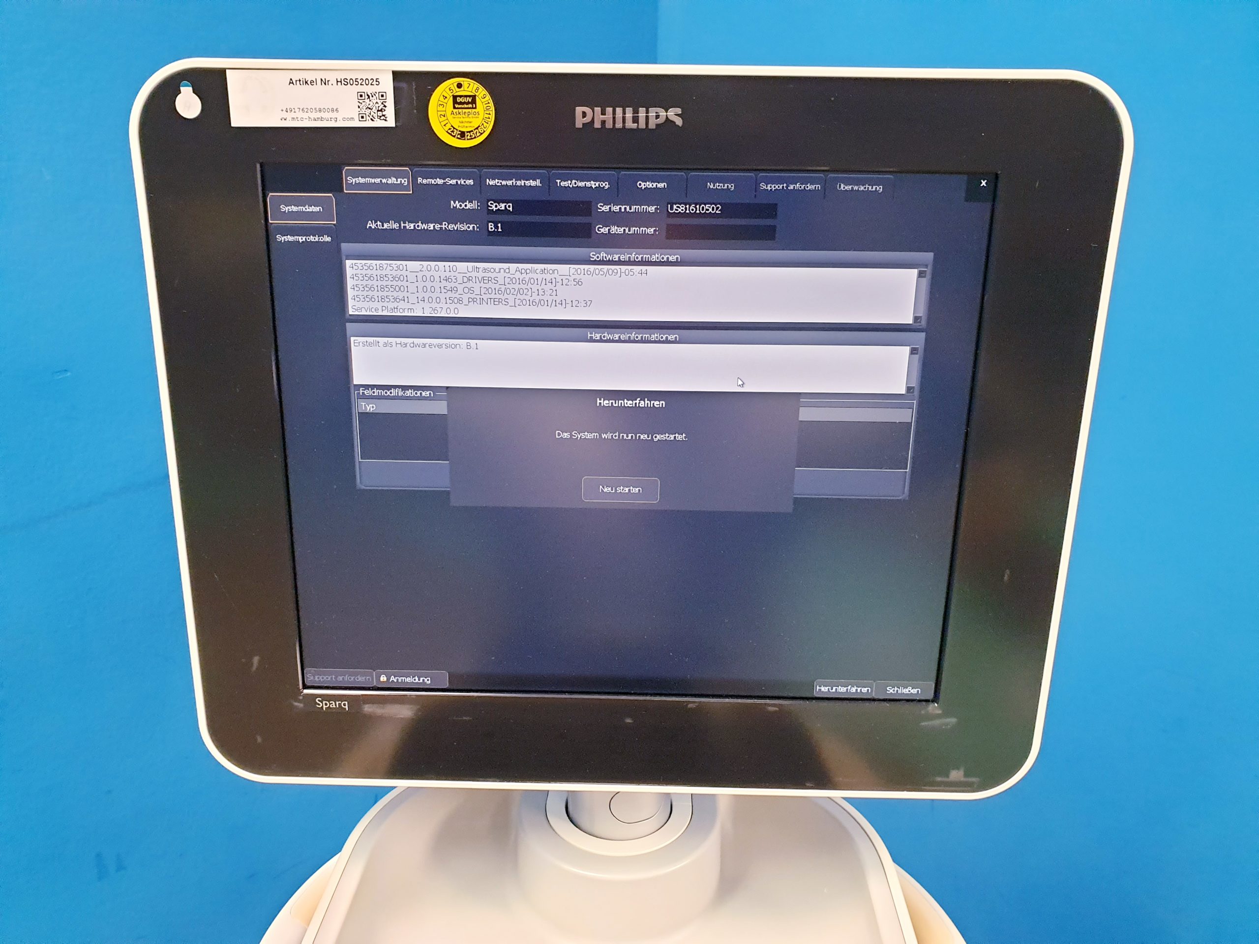 PHILIPS SPARQ – DEFEKT: Dieses medizinische Bildgebungssystem von Philips ist derzeit defekt und eignet sich nur für Ersatzteilgewinnung oder Reparatur. Ein zuverlässiger Betrieb kann aktuell nicht gewährleistet werden.