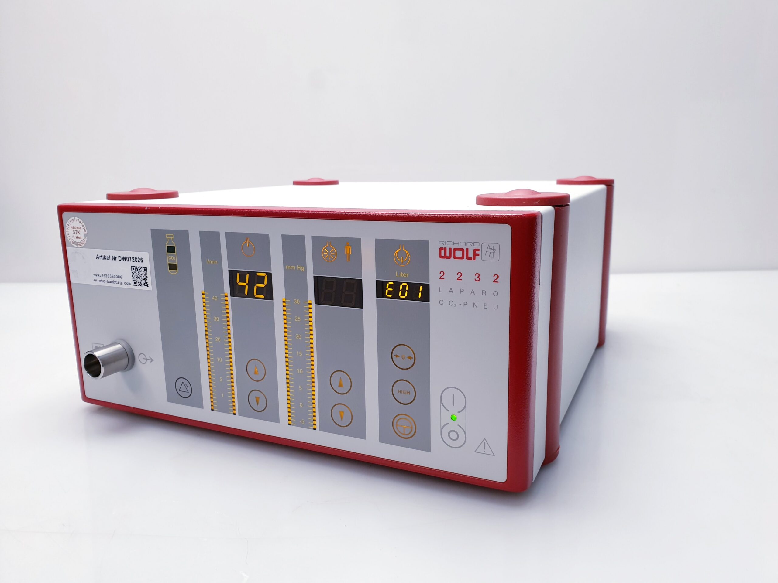 Der RICHARD WOLF 2232 Elektronische CO2-Insufflator ist ein hochmodernes medizinisches Gerät, das speziell für die sichere und präzise CO2-Insufflation bei endoskopischen Eingriffen entwickelt wurde. Dieses Gerät gewährleistet eine optimale Erweiterung von Hohlräumen, um eine verbesserte Sicht und Arbeitsbedingungen für den Operateur zu schaffen.