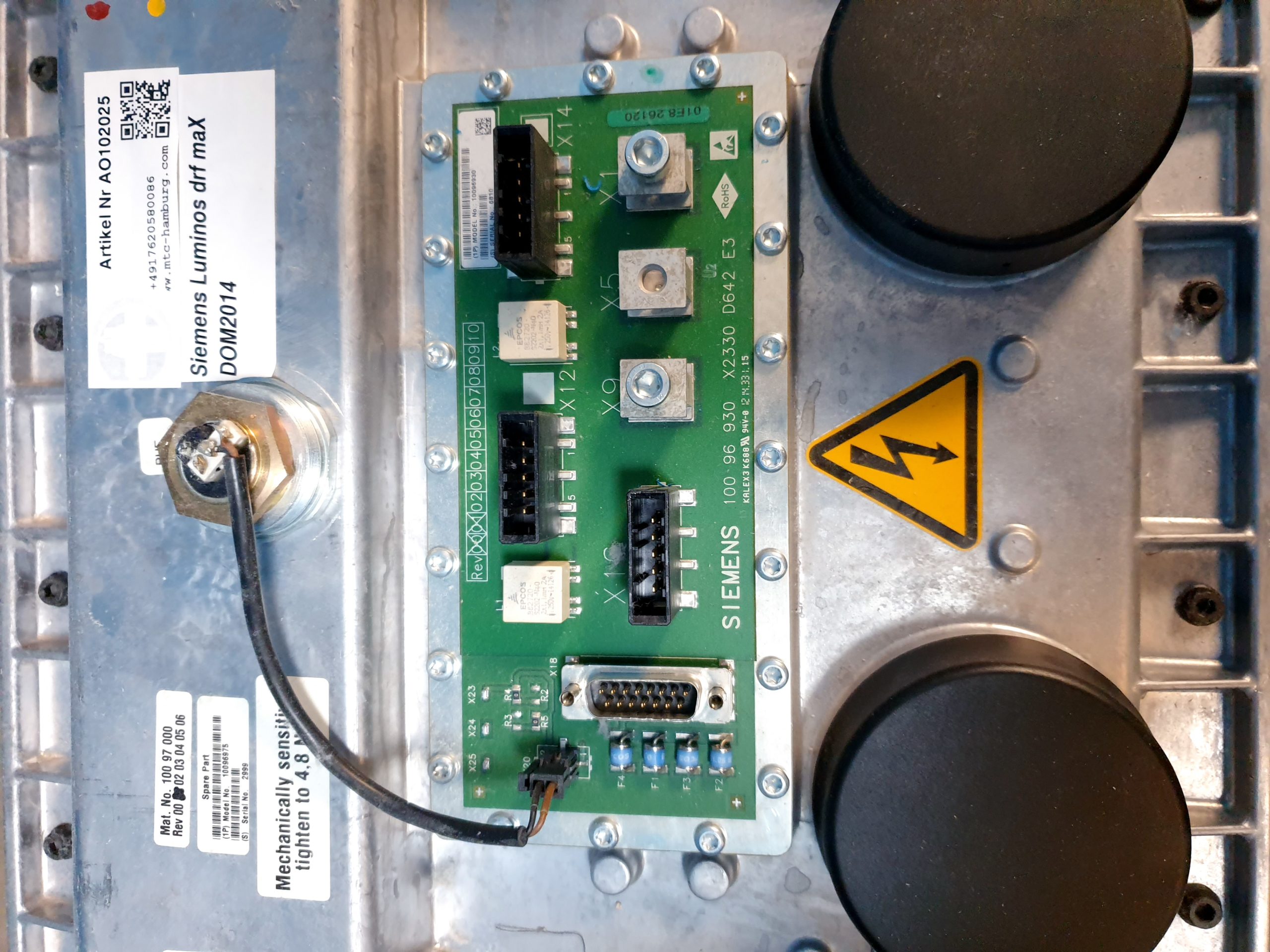 Der Siemens 10097000 LUMINOS DRF MAX DOM 2014 Hochspannungstransformator ist somit eine unverzichtbare Komponente für Medizintechniker und Kliniken, die Wert auf höchste Leistung und Sicherheit in der medizinischen Bildgebung legen. Durch seine präzise Konstruktion trägt er maßgeblich zur Qualität der diagnostischen Verfahren bei.