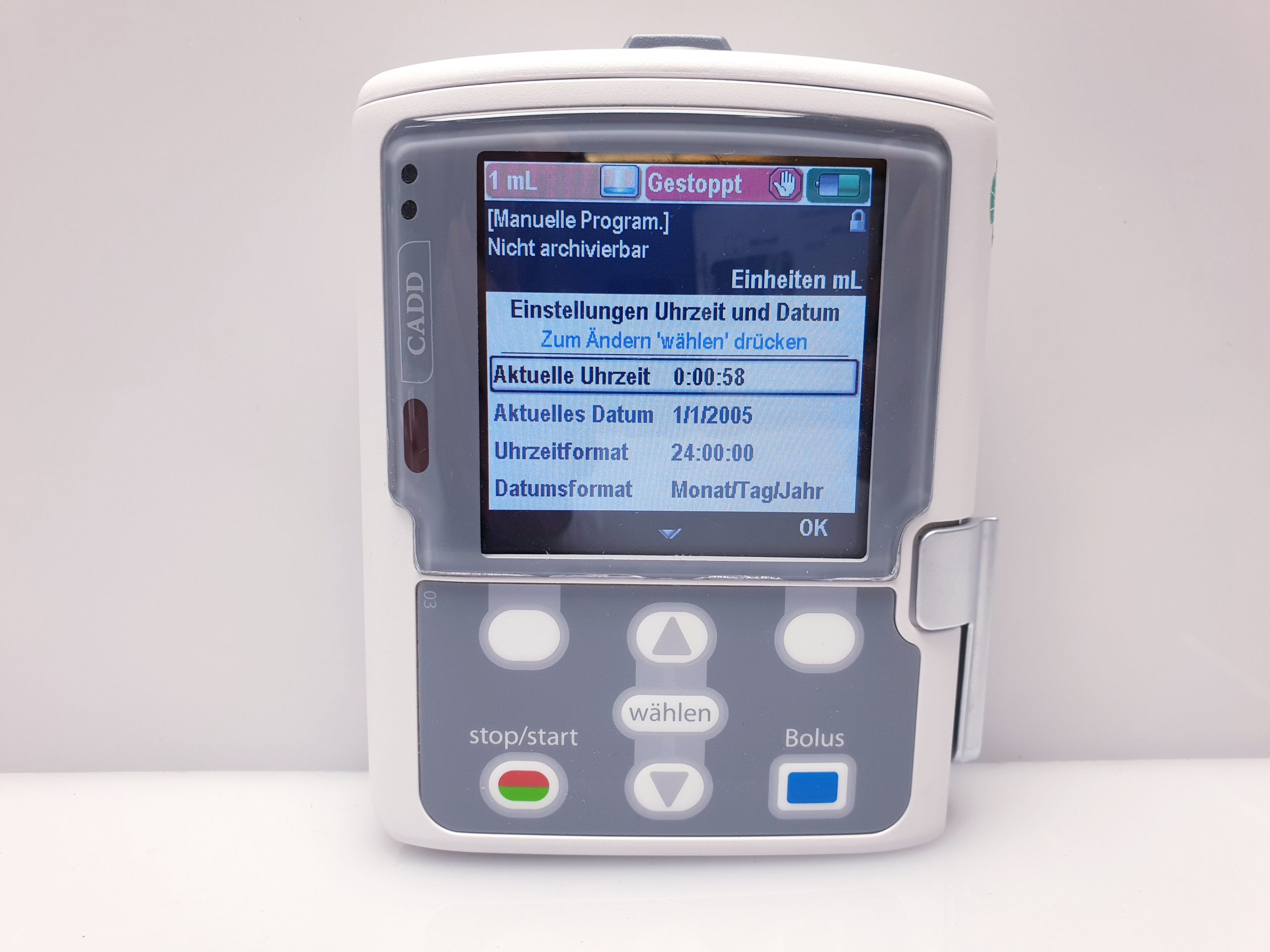 Smiths Medical CADD Solis 2110 ist ein präzises, tragbares Infusionspumpensystem, das für die kontrollierte Verabreichung von Medikamenten in der Schmerztherapie entwickelt wurde. Es bietet zuverlässige Dosierung und einfache Handhabung, um eine sichere und effektive Patientenversorgung zu gewährleisten.