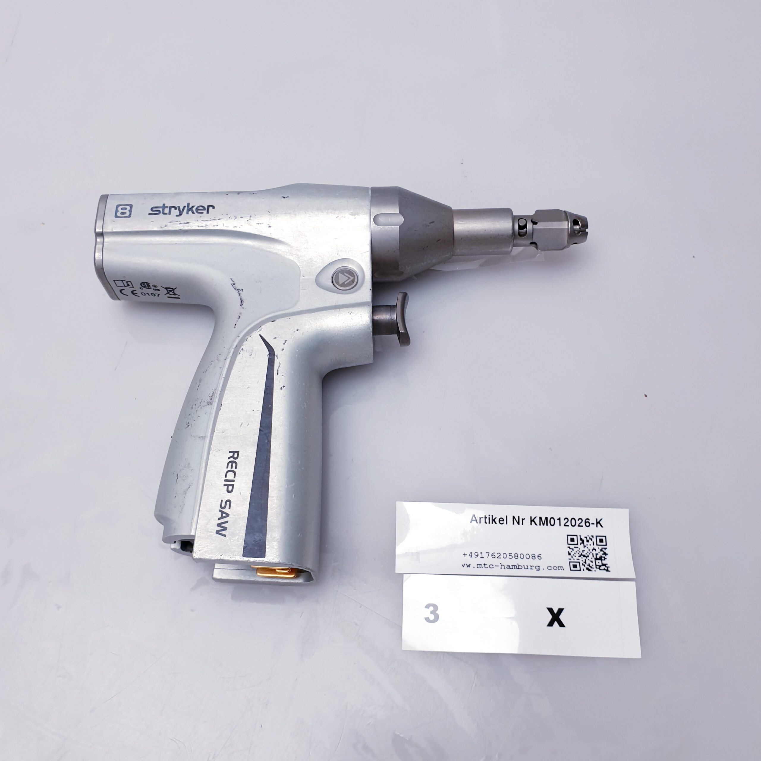 Die Stryker System 8 Reciprocating Saw (Modell 8206) ist eine batteriebetriebene chirurgische Hochleistungssäge, die primär für die Orthopädie großer Knochen und die Thoraxchirurgie konzipiert wurde. Sie zeichnet sich durch verbesserte Ergonomie, längere Akkulaufzeit und die Möglichkeit zur aktiven Reinigung (Eintauchen) vor der Sterilisation aus.