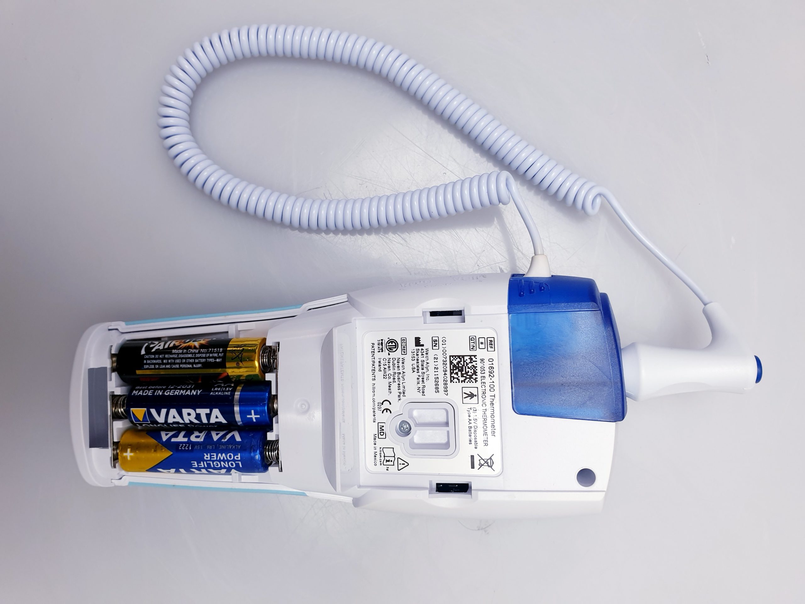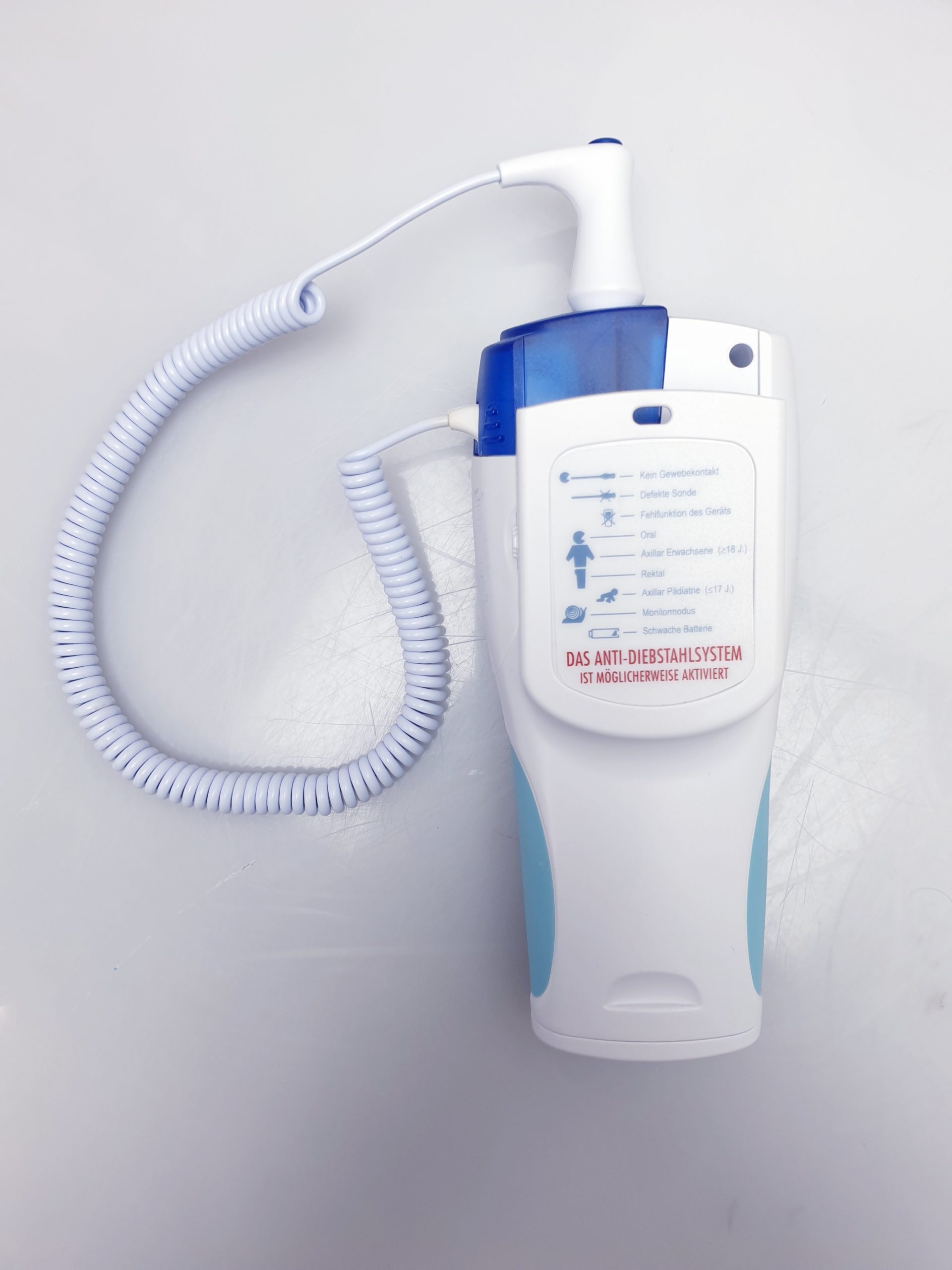 – Austauschbare Sonden (blau = oral/axillar, rot = rektal)
