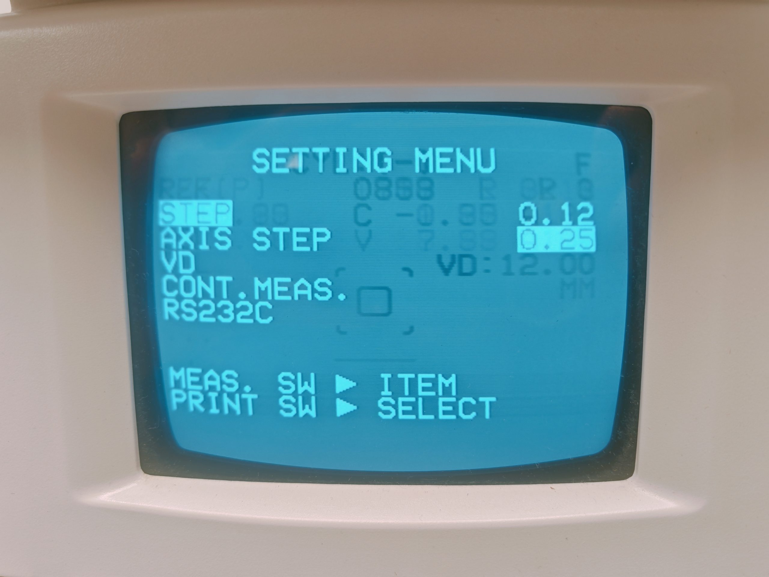 - Messbereich Sphäre: typischerweise -20D bis +20D